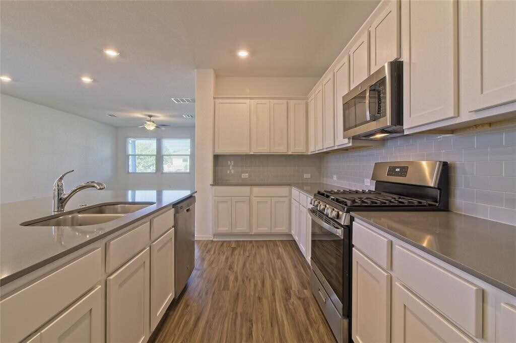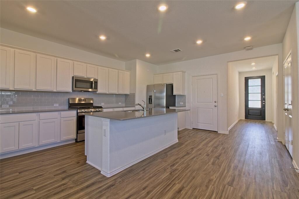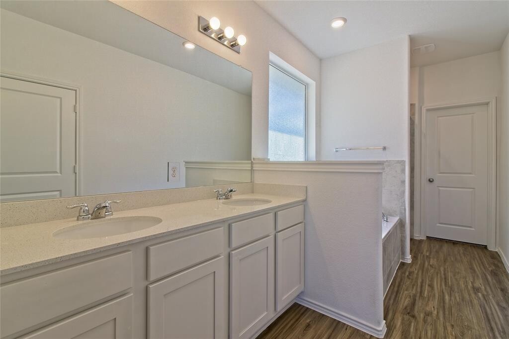 Highest A" Rated () Elementary School in Liberty Hill school district in THIS neighborhood - How convenient! This lovely newly built home is ready for you soon! Fantastic curb appeal on corner lot. Wood plank flooring downstairs keeps it nice and cool, while carpet upstairs keeps noise to a minimum. Master suite downstairs has dual vanity, separate shower, garden tub and walk-in closet. Three spare bedrooms and full bath upstairs. Located in desirable Rancho Sienna, community amenities include playgrounds, parks, trails, pool and more. Enjoy country living while close to major commuter routes and easy access to Georgetown, Cedar Park, Leander and Liberty Hill. Pets ok; limit two; 50 lbs or less. Resident must choose between two resident benefit packages at time of application."