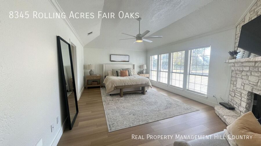 Freshly remodeled, this stunning 5-bedroom, 3.5-bathroom residence perfectly blends elegance and comfort. Nestled in the sought-after Fair Oaks Ranch community on 2.5 acres, this home features a spacious 3-car garage and an inviting layout designed for modern living. As you step inside, you'll be greeted by two generous living areas, with the centerpiece being a cozy wood-burning fireplace that creates a warm and inviting atmosphere. The heart of the home is the expansive kitchen, boasting custom cabinetry and 12-foot marble counter island for all those culinary adventures, making it perfect for family gatherings and entertaining friends. There are windows galore in this house, so you'll get lots of natural light. The master suite is downstairs on the main level and features a large walk-in shower, his and hers vanities, as well as his and hers walk in closets, one of which is so large it's being used as an office! But don't worry, the closet has a closet in it too. There is a mother-in-law suite bedroom downstairs by the garage as well. Upstairs, the versatile game room offers endless possibilities, whether for play, relaxation, or movie nights, with a peaceful balcony outside looking out over the backyard. One bedroom upstairs has an attached full bathroom, and the other 2 bedrooms have a jack and jill set up in between the rooms. Step outside to your grand covered patio, complete with stained concrete flooring, an outdoor fireplace, and a covered breezeway to experience the starry Texas Hill Country nights. The treehouse is built in and ready for playmates. The entire lot is high fenced and ready for your garden to be built. Experience luxury living in Fair Oaks Ranch, where every detail has been thoughtfully crafted for your comfort and enjoyment. Don’t miss the opportunity to live in this unbelievable retreat! 3 Wood Burning Fireplaces Acreage Hoa Dues Mature Trees Privacy Septic Treehouse