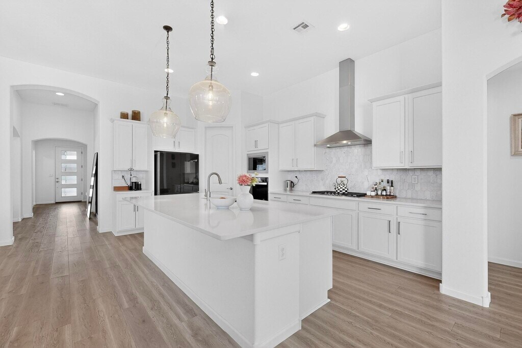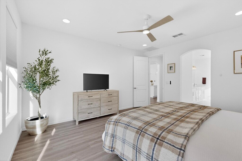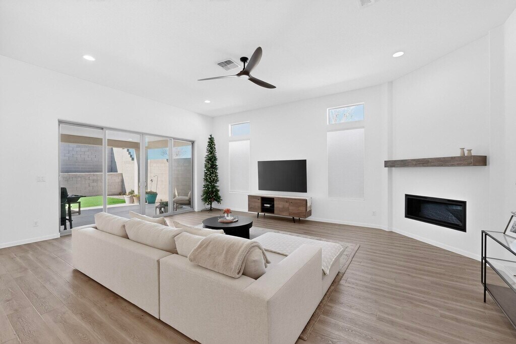 Welcome to this beautifully maintained single-level Parklane rental home with upscale finishes on a highly desirable lot. The award-winning kitchen opens seamlessly to a spacious living and dining area,perfect for entertaining or everyday comfort. Enjoy year-round outdoor living on the large covered patio. Inside,you'll find elegant wood flooring,ample storage,and a versatile den ideal for a home office or flex space. The owner's suite features a framed walk-in shower and a relaxing private retreat. Located near the upcoming Glyphs at Volcan Mesa development,residents will soon enjoy a boutique grocery store,restaurant,and neighborhood amenities--all offering comfort,style,and convenience on one level.