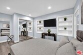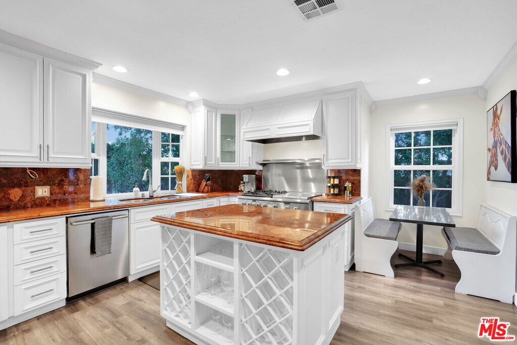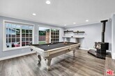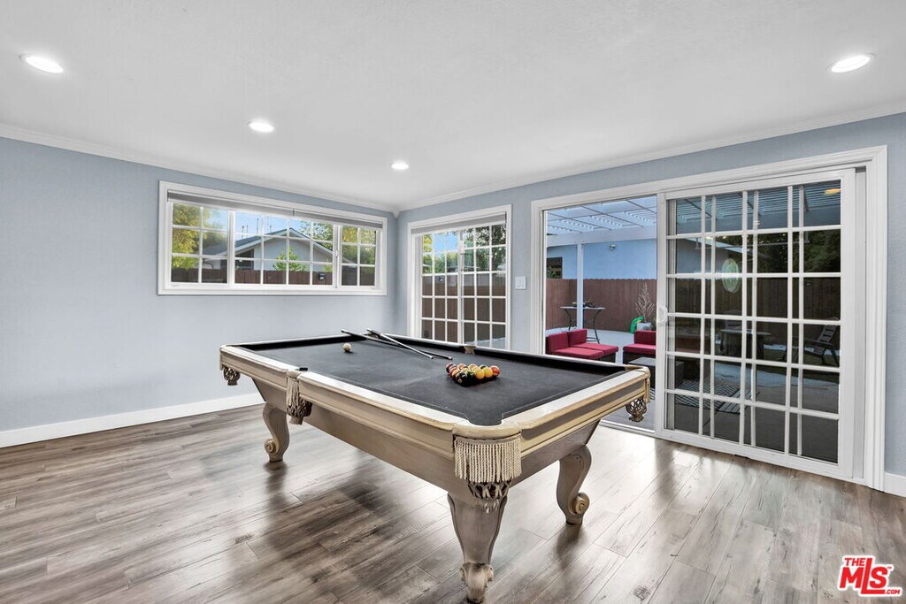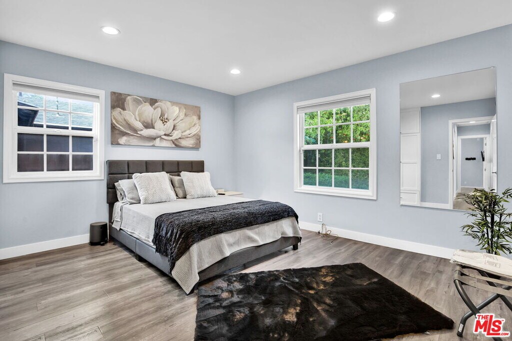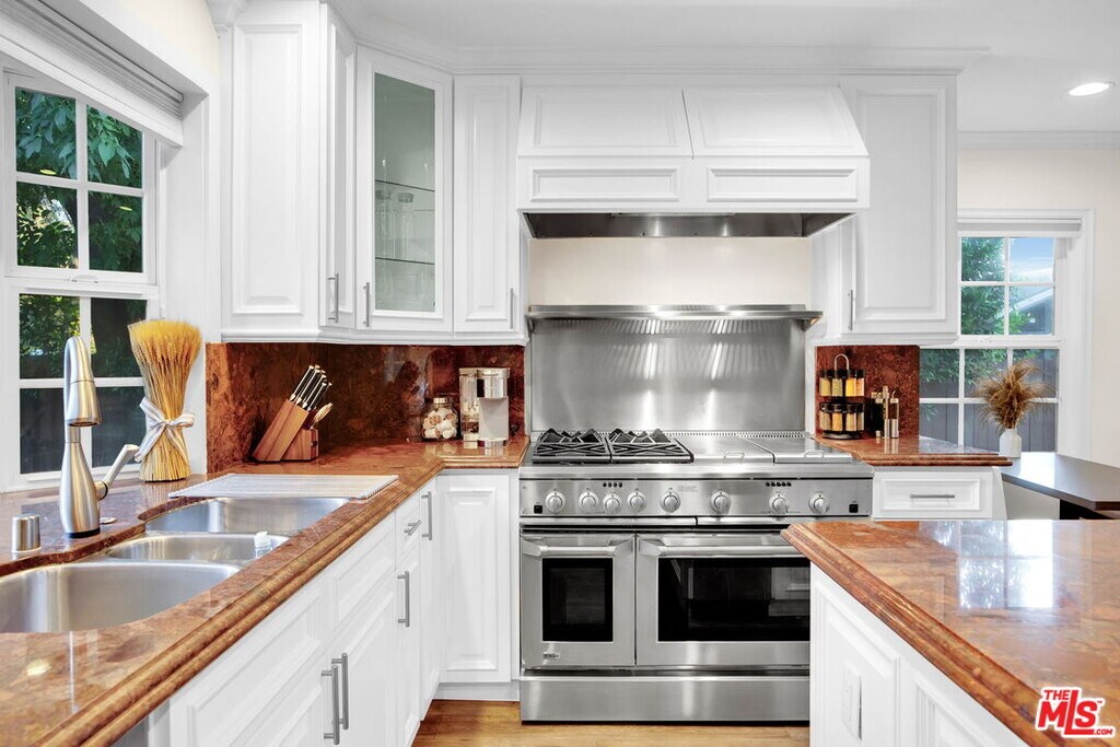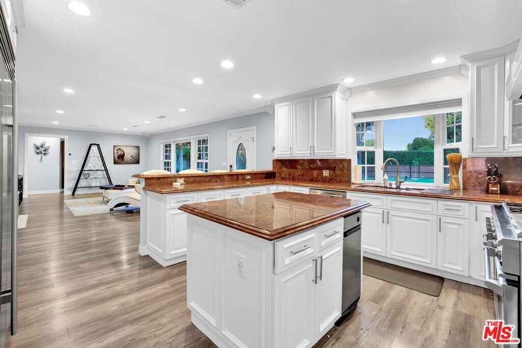Welcome to this charming one-story ranch in a highly sought-after Northridge neighborhood. Gated for privacy and designed for comfortable living, this home offers 4 bedrooms, 2.5 bathrooms, and 2,583 sq ft of light-filled living space on an expansive 16,400+ sq ft lot. A circular driveway and lush landscaping lead to a welcoming covered front porch, setting the tone for the inviting interior.Inside, enjoy a bright living room with wood-like flooring, recessed lighting, dual-pane windows with custom shades, and a stylish modern fireplace. The open floor plan flows seamlessly into a sunlit kitchen featuring granite countertops, a breakfast nook with built-in seating, breakfast bar, center island with wine rack, Sub-Zero refrigerator, GE Monogram stove, and an adjacent laundry room with updated powder room. A step-down family room with a vintage heatilator fireplace and sliding glass doors opens to the backyard perfect for indoor/outdoor entertaining.The spacious sunken primary suite offers a private retreat with sliding doors to an enclosed patio featuring a spa tub, plus a large walk-in closet and a remodeled bathroom with dual sinks, skylight, and oversized steam shower. Two additional bedrooms with built-ins share an updated hallway bath. Additional features include Nest thermostat, alarm wiring, and 220 electrical.The tranquil backyard includes a covered patio, fire pit, and low-maintenance landscaping. Please note: the rear ADU is tenant-occupied, and driveway access is shared. A rare leasing opportunity combining comfort, privacy, and convenience. MLS ID 26793267