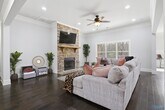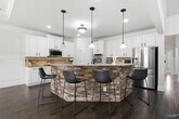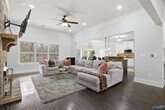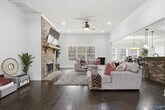This beautifully designed home offers comfort,space,and functionality throughout. Enjoy large bedrooms,including a private primary suite separated from the others for added peace. With three versatile living areas,there’s plenty of room to relax,work,or entertain. The home includes a full-size refrigerator and a full-size washer and dryer for everyday ease. Hardwood floors enhance the main level,while the upstairs offers cozy carpeting. Step outside to a spacious backyard with a covered patio and a welcoming covered front porch—perfect for outdoor living. Ample parking is available. Home is Fully Furnished for your convenience.