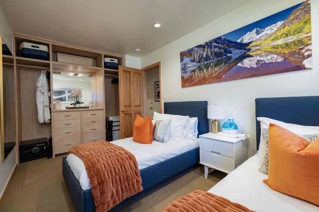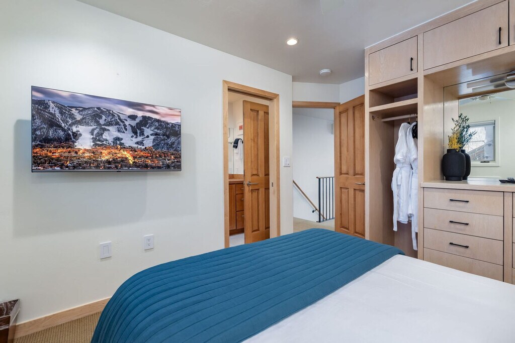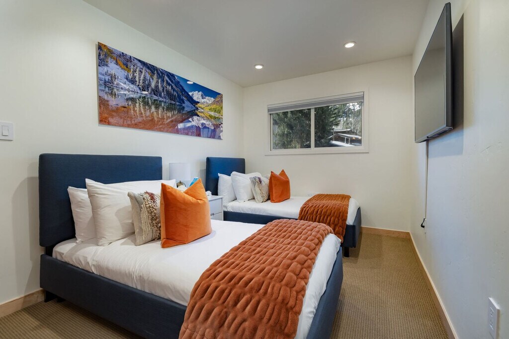 Experience the ultimate Aspen escape in this comfortable 3-bedroom townhouse, perfectly positioned for both adventure and relaxation. Feel at home and enjoy breathtaking mountain views from your private balcony. Unwind by the cozy gas fireplace after a day on the slopes in winter, or stay cool with air conditioning during summer adventures. The fully stocked kitchen has everything needed to prepare home-cooked meals. Relax with your favorite music on the Sonos speakers or enjoy a movie night with cable and streaming services. Includes a dining table with seating for six. The master bedroom, second bedroom, and third bedroom each have a large wardrobe closet with plenty of space. Both bathrooms have a bathtub/shower combo and are stocked with shampoo, conditioner, body soap, body lotion, and more. Enjoy the convenience of a private parking space in the on-site lot, with additional free parking available by request. Centrally located by City Market, this townhouse is within walking distance of all restaurants, shopping, the gondola, and hiking trails. Available 24/7 through the messenger, phone, or text. The Downtowner is also available, a free car ride service within the City limits. We take the cleanliness of this townhome very seriously, ensuring it is professionally cleaned and thoroughly sanitized before each guest’s arrival for your comfort and peace of mind. High-speed X-finity Wi-Fi will help you stay connected during your stay. [SI]