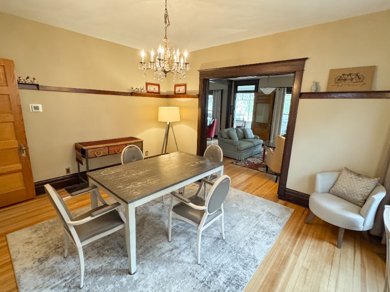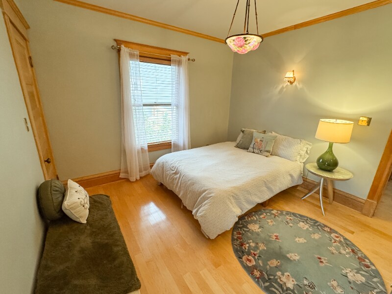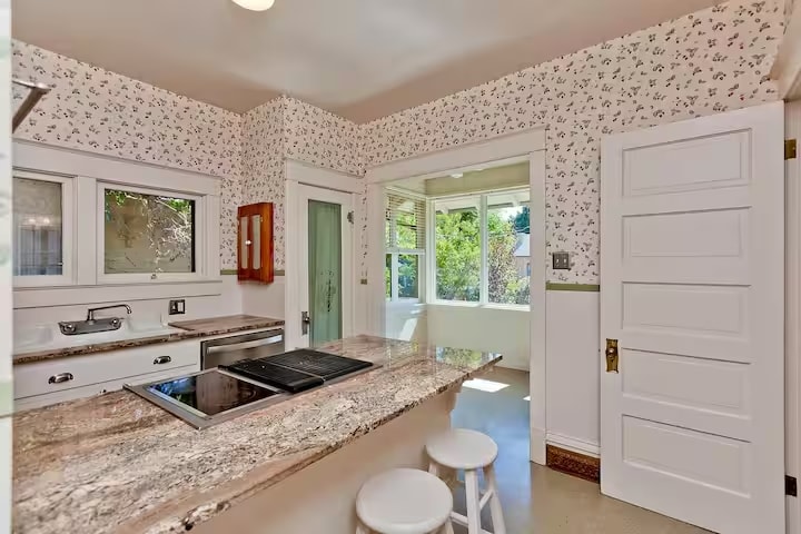 Property Id: 1682255 This 1915 historic home in downtown Grand Junction blends charm with modern amenities, perfect for business travelers, medical professionals, or short-term stays. Main Living Area Relax in the living room, TV area, and dining space with original trim, baseboards, and flooring. Kitchen A fully equipped kitchen with modern appliances, cookware, and an original butler's pantry with an eat-in space. Bedrooms & Bathrooms Bedroom 1: Queen bed, en-suite bath with stand-up shower, stacked washer/dryer, walk-in closet. Bedroom 2: Queen bed, spacious walk-in closet. Bathroom 2: Shared half bath with soaking tub. Lower Level Family room, bonus room with queen bed, remodeled walk-in shower, workout space, and non-conforming bedroom. Private backyard access. Property Highlights Refrigerated air conditioning Four-season porch & private fenced backyard Detached garage for parking/storage Location 5 mins to St. Mary's & VA Medical Center 15 mins to Community Hospital 20 mins to Palisade, CO