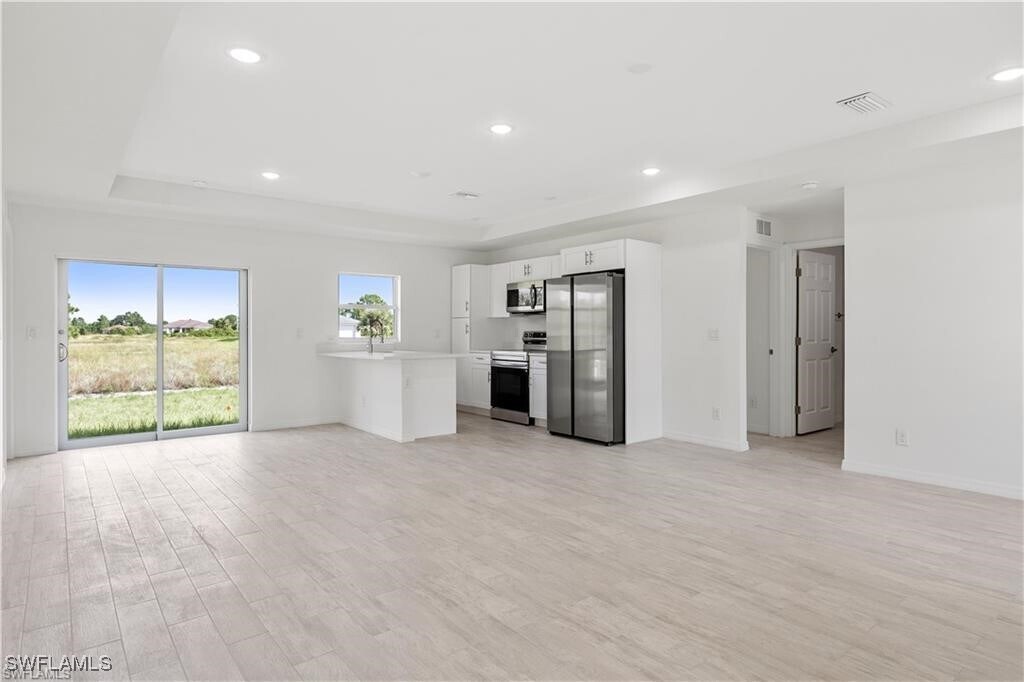 Juliana CifuentesStart the year off right and enjoy one free month of rent! This modern, well-designed rental home in Lehigh Acres offers the perfect blend of functionality and style. With 1,222 square feet of living space, it features durable tile flooring, sleek shaker cabinets, and low-maintenance quartz countertops throughout. The spacious living area, highlighted by LED lighting and 8.8-foot ceilings, is both open and inviting. Offering three bedrooms, two bathrooms, and an attached one-car garage, this property strikes a balance between comfort and convenience. Additional features include a sprinkler system for easy lawn maintenance and impact windows for added safety and energy efficiency. Situated in a sought-after area, this home is an excellent choice for modern and comfortable living.