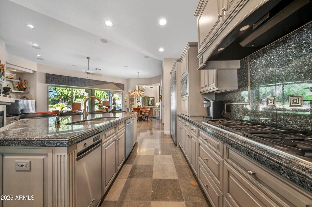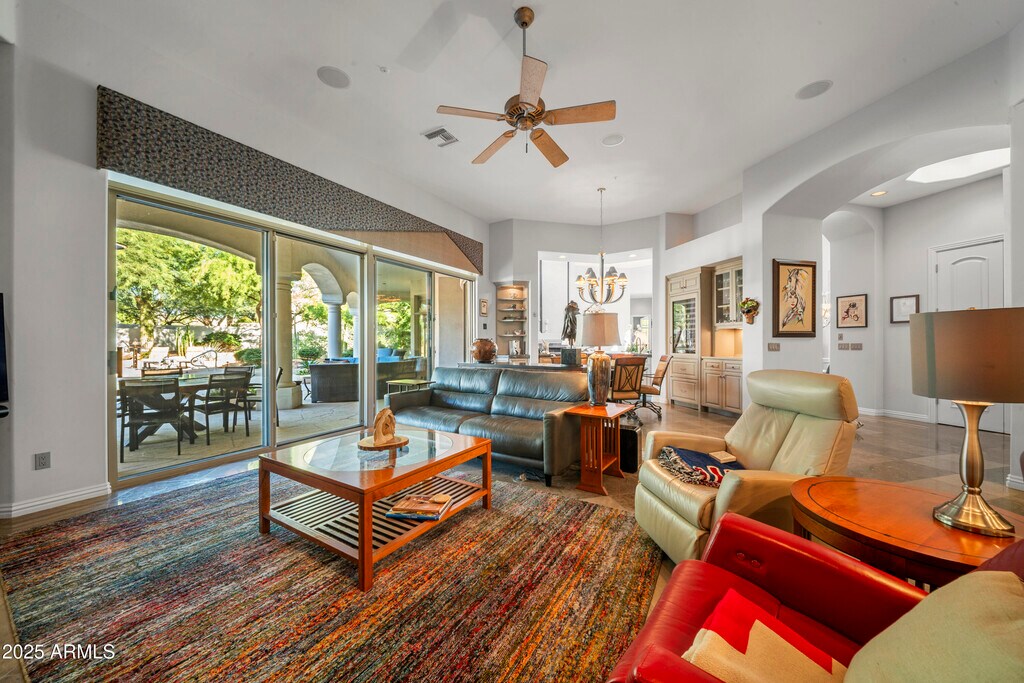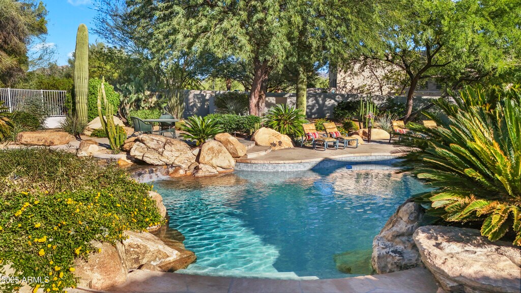 Discover a truly Spectacular residence nestled within the prestigious,GUARD GATED GOLF community of Pinnacle Peak Country Club. Located in the heart of North Scottsdale,this exceptional home blends Refined Luxury with effortless Indoor-Outdoor living. Offering a Breathtaking Backyard Oasis,surrounded by serene,mature landscaping,sparkling pools,spa,tranquil water ponds and soothing water fountain features. Expansive lounging areas create the perfect setting for Relaxation & Entertaining,all set against the backdrop of Arizona's stunning Desert Beauty. Inside,the Custom Culinary Chef's Kitchen will impress all with top-tier finishes and thoughtful design. Enjoy a Seamless flow with the Kitchen-Family room Great room,boasting a large wet bar. The generous counters and ample seating are ideal for special gatherings of any size. All Chef's & food tasters are welcome within the spacious Great Room. Escape to the Primary Oasis showcasing soaring ceilings,an at- home exercise / meditation room,along with a huge sleeping area. Who needs a hotel...the spa inspired bathroom offers the perfect way to end a long day. No belongings are left behind with the fabulous space in the dual custom fully outfitted closets. Incredible Guest suites provide Comfort and Privacy,making hosting effortless and stress free! Perfectly located close to world-class golf,scenic hiking trails,acclaimed restaurants,chic boutiques,and everything that makes North Scottsdale living so desirable,this home is the epitome of Luxury and Convenience. A rare offering with so much more to explore. Welcome home to this Perfect Desert Paradise !