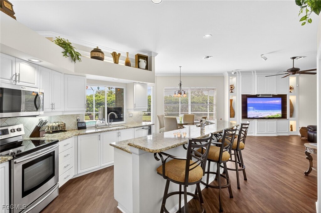 Step through the front doors,grab a beverage,put your feet up,and settle into the SWFL lifestyle in this spacious TURNKEY 3-bedroom plus den,two full bath,two half bath pool home with an air-conditioned 2-car garage/mancave,located in the highly sought-after gated community of Cross Creek Estates. Situated in the heart of the Daniels Corridor,this home offers incredible convenience—just minutes to restaurants,shopping,medical facilities,the Red Sox and Twins spring training complexes,RSW International Airport,Hertz Arena,parks,beaches,and major roadways. Everything you need sits right within reach. Inside,the home welcomes you with luxury vinyl plank flooring and an updated kitchen featuring stainless steel appliances and granite countertops. The layout provides generous living spaces ideal for relaxing or entertaining,while the dedicated den/office offers flexibility for work,hobbies,or a quiet retreat. Every window and exterior doorway is protected by 100% automatic hurricane shutters,offering added peace of mind year-round. Recent updates elevate the home even further,including refinished kitchen and bathroom cabinetry,a newer pool heater/chiller,a Lifestyle garage screen,and an enhanced epoxy-style garage floor. The home also features a suite of smart-home conveniences,including automated pool and sprinkler systems,smart door lock,Ring video doorbell,Amazon virtual assistant,and an integrated music/surround-sound system—all manageable from your smartphone. The screened-in lanai creates an inviting outdoor living area with plenty of space for lounging,grilling,or enjoying the warm Southwest Florida sunshine. The private pool makes it easy to enjoy quiet evenings at home or host relaxed weekend gatherings. Cross Creek Estates offers a full array of community amenities,including golf,a complete health club and fitness center,community pool and spa,steam room,tennis courts,pickleball courts,racquetball,bocce ball,walking paths,lakes,multiple community rooms,and a dog park. If you’re looking for a beautifully maintained,well-appointed rental home that delivers comfort,convenience,and the best of the SWFL lifestyle,this property is ready to welcome you. HOA rules require a 3-month minimum lease.