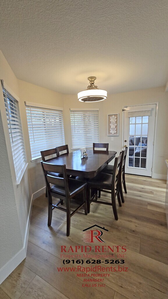 Are you looking for a friendly and quiet street? Look no further This beautiful four-bedroom (potential downstairs office) with three full baths has an open floor plan and plenty of natural light. The home has many upgrades, including plantation shutters and luxury vinyl plank floors throughout the first floor, which continue upstairs. The family room has a cozy fireplace that flows into the lovely kitchen with granite countertops and stainless-steel appliances. The spacious upstairs master bedroom has a lovely, chic ensuite. Outside, you will have a front patio with an open area and a back covered porch, where you can relax and enjoy your solar-heated, sparkling pool day and night. Other amenities. Whole house fan, central heating/air conditioning, and three-car garage Location description: conveniently near Highway 99, shopping, schools, parks, and a greenbelt where you can enjoy a morning or evening walk. Garbage, Sewer Utilities, and pool service are included. No pets allowed, one-year lease required, Non-Smoking Residence, and must meet minimum pre-qualification requirements: Must make a minimum. 3 times the rent in verifiable income, good credit min. (FICO 600), good rental history (at least 2 verifiable years) and No Pass Evictions. Application Fee; $40 per Adult. Please call to schedule a viewing. Joe