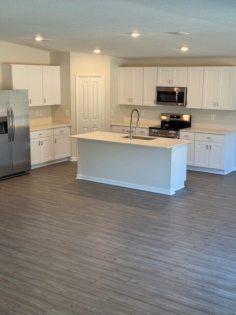 Stunning new construction Lennar home located in the highly desirable Marion Ranch community in Ocala. This well-designed residence offers a 3-car garage, spacious open-concept floor plan, and modern, energy-efficient construction—ideal for comfortable, low-maintenance living. The home has been carefully upgraded throughout, including a new Kohler kitchen faucet and sleek modern cabinet pulls that enhance the kitchen’s clean, contemporary aesthetic. The entire interior has been freshly repainted with premium Sherwin-Williams paint, selected for durability and added protection against stains and odors, helping maintain a clean and fresh living environment. The garage has been professionally painted and finished with an epoxy-coated floor, providing superior durability, protection, and an upscale appearance. For added comfort and peace of mind, the A/C system is equipped with a UV light designed to help reduce bacteria and protect against mold, contributing to improved indoor air quality. Wi-Fi is included for added convenience. Residents enjoy access to a brand-new community clubhouse with resort-style amenities, including a swimming pool, fitness center, splash park, playground, walking trails, tennis courts, and six pickleball courts, offering an active and social lifestyle just steps from home. Ideally located minutes from shopping, dining, grocery stores, and everyday conveniences, with easy access to major roadways for commuting throughout Ocala and surrounding areas. The property also features a private backyard with no rear neighbors, providing peaceful views and enhanced privacy. The primary suite includes a modern bathroom with a frameless glass shower and quality fixtures. Owner does not live on-site.