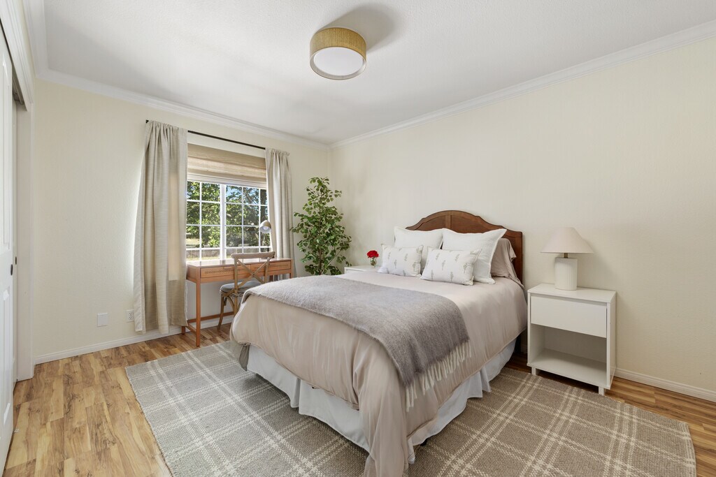 Now Offered for Lease at $5,300/month Welcome home to this elegant and inviting residence tucked away on a quiet cul-de-sac just minutes from downtown Los Alamos. Thoughtfully designed for comfort and style, this two-story home offers open-concept living with a seamless flow between the kitchen, dining, and family areas—perfect for relaxing or entertaining. The beautifully updated kitchen features a Viking range, GE Café refrigerator, soft-close cabinetry, island seating, and a spacious walk-in pantry. The family room exudes warmth with a cozy fireplace, soaring cathedral ceilings, and sliding glass doors that open to the private backyard for true indoor-outdoor living. The primary suite, conveniently located on the main floor, provides a tranquil retreat with a walk-in closet, freestanding soaking tub, glass-enclosed shower, and double vanity. Upstairs, three additional bedrooms share a well-appointed bath, offering both comfort and privacy. French oak hardwood floors accent the main level with timeless sophistication. Outside, enjoy peaceful mornings on the front porch bordered by white roses or unwind in the backyard oasis—complete with a stone patio, built-in firepit, grassy areas, and fruit trees. With a newer roof, solar panels, and meticulous upkeep, this home combines beauty and efficiency in one exceptional package. Available for a one-year lease. Pets considered.