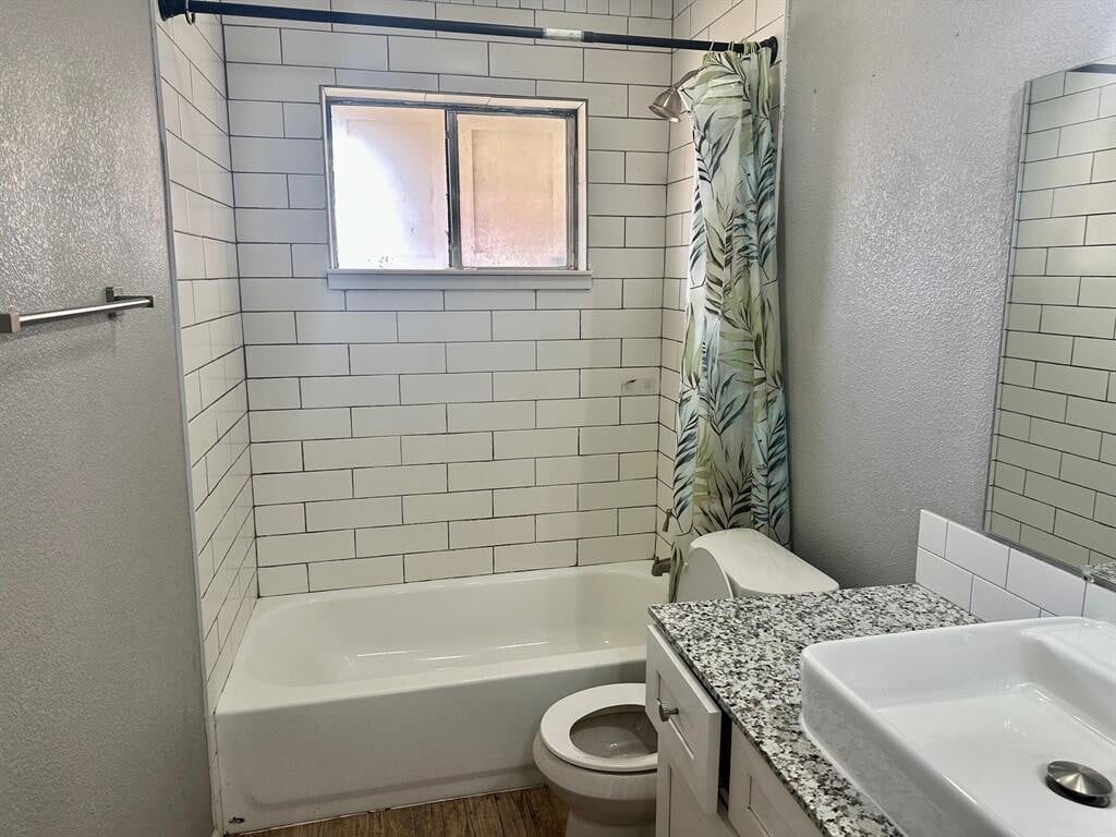 Updated 2 bedroom 1 bath duplex. Open Floorplan. Granite Counter Tops. Gas stove. Wood like laminate flooring and tile. NO Carpet. Back covered porch. Small backyard with brand new privacy fence. MLS ID 7839850
