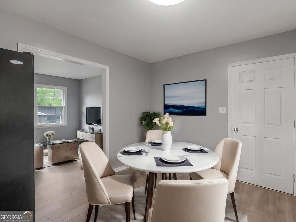 Nestled in a quiet, established neighborhood, this charming property offers a delightful blend of vintage aesthetics and modern convenience. Step inside to discover a cozy living room, perfect for relaxation or entertaining guests. Adjacent, you'll find the spacious eat-in kitchen, providing ample space for culinary endeavors and casual dining. This lovely home boasts three comfortable bedrooms, offering privacy and tranquility for every member of the household. The master bedroom features its own ensuite half bathroom, providing added convenience and privacy. Additionally, there's a full bathroom to serve the remaining bedrooms and guests. Outside, a serene patio awaits, overlooking a beautiful, fenced backyard adorned with lush greenery, providing a peaceful retreat for enjoying morning coffee or evening gatherings with loved ones. The shaded ambiance adds to the allure, creating a cool oasis during warm summer days. This property also includes a spacious storage shed, perfect for stowing away seasonal items, gardening tools, or any other belongings you need to keep organized and accessible. As an added bonus, lawncare is included! Convenience is key, with easy access to major thoroughfares like I-75 and I-285, ensuring hassle-free commutes to the airport and downtown area. Plus, the single garage equipped with an automatic opener adds an extra layer of convenience and security to your daily life. Don't miss out on this rare opportunity to experience the best of vintage charm and modern living in a quiet, desirable neighborhood. Schedule a viewing today and make this your new home sweet home! MLS ID 10673522
