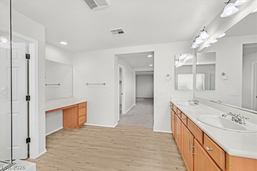Nearly 3400 sq ft home on a cul-de-sac in the heart of 89052! This home has it all in a sought-after location! 2 on-suite bedrooms, one up/one down! Huge island in kitchen with granite/stainless opens to expansive great rm. Large loft boasts views of the Strip! Primary bedroom has retreat and walk in closet along with a spacious bath! Washer/Dryer incl. TONS of space and storage!! Vinyl plank flooring downstairs, neutral carpet and paint! Community has two gates, a playground, jogging trails, large grass area, a pedestrian gate that leads to Coronado High School and another that leads to the new Dundee-Janes Park with pickleball courts!