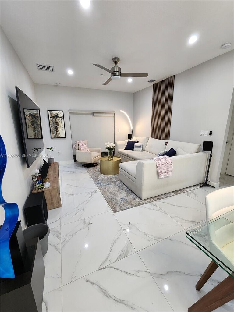 Ground apartment with patio-balcony, no obstruction views Interior design, custom closets. No sun exposure. Beautiful walking areas children playground & white course Park close distance. Quart countertop kitchen, stainless steel appliances. Porcelain throughout floor and wood accent wall. Primary bathroom with two vanities and doble showers. Shades and blackouts in all windows. Close to supermarkets, banks, restaurants, entertainment areas. Downtown Doral/city place at your fingertips. Strategic access to highways 826, 836, Turnpike. Minutes to the Miami airport, shopping malls, medical facilities, golf courses in the heart of Doral ! PARKING ASSIGNED/ GUEST PARKING AVAILABLE. MLS # A11902755