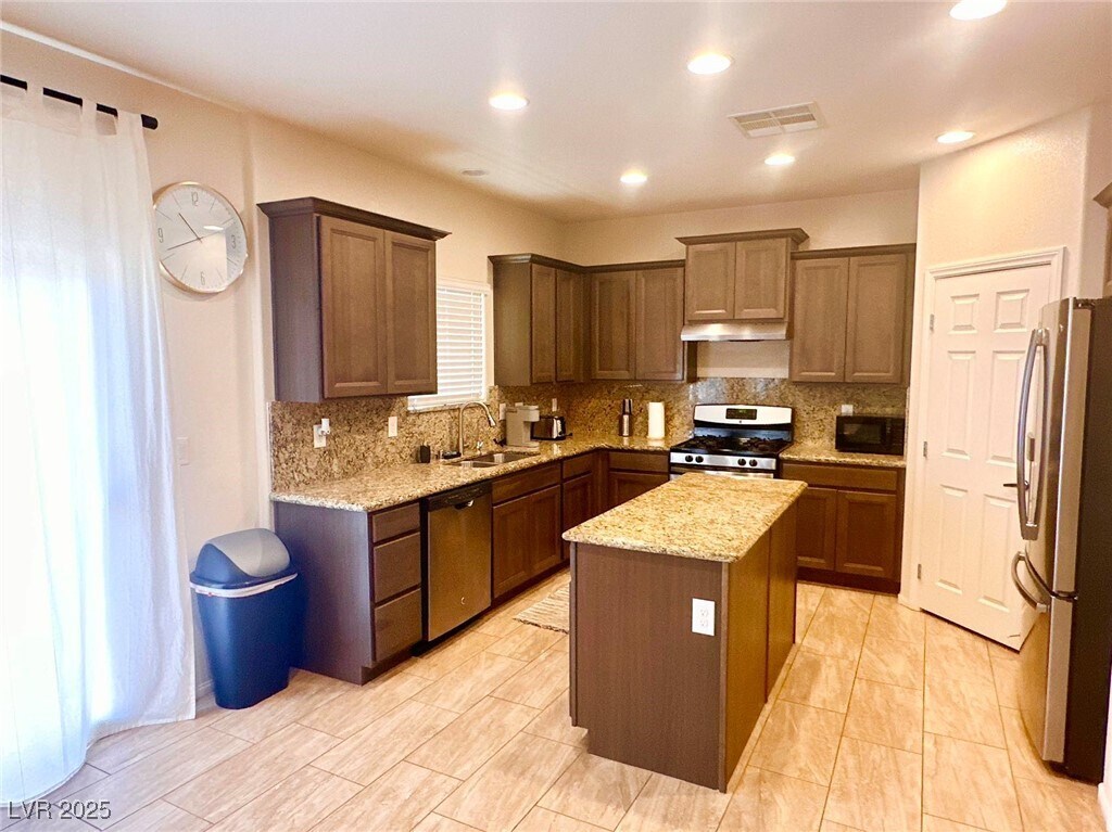 Beautiful 4-bedroom 3-bath home, located in a highly desirable Spanish Ranch Creek community in the Southwest Las Vegas. Close to Highway and shopping center! Several minutes drive to Costco or Walmart. Friendly neighbors. Open floor plan downstairs with upgraded kitchen with classical cabinets, quartz counter top. All hard flooring with vinyl and tile. Tons of storage throughout the home, many upgrades. Including all the appliances. Nearly 2,300 sf of living space. All driveway and patio are paved with a rock facade on house columns. Relax in a yard designed for low-maintenance living. This property offers everything you need for comfort, convenience and style. Must See!!!. NO WAITING FOR THIS BEAUTY!