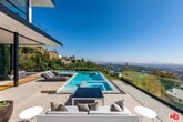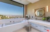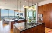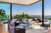 Quintessential Sunset Strip Modern with A+ views from downtown to the ocean! Walled and gated motor court, perfect for the high-profile privacy/security conscious. Double height entry. Versatile living rooms lead to vanishing walls of glass opening to wraparound outdoor space featuring an infinity-edge L pool, spa, firepit. Chefs eat-in kitchen with Gaggenau appliances, marble countertops, butler's pantries & double island. The primary suite features a sitting room, dual bathrooms, dual walk-in closets, and an outdoor patio. Movie theater, video wall in entertainment room with bar opens out to the view and terrace. Gym or guest suite w/ wet/dry sauna. Off street parking & 3 car garage. Award winning designer Tim Campbell used midcentury modern influences like grand terrazzo, antique brass, warm woods and elegant natural stone. Moments from Sunset yet perched on a promontory. MLS# 25596929