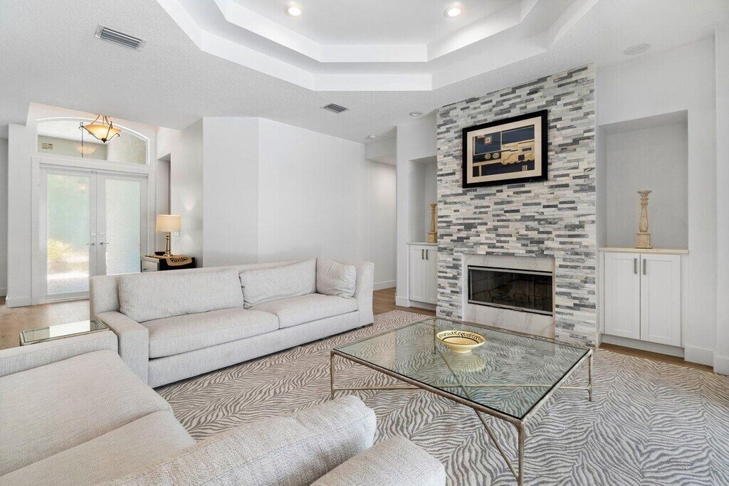 Courtesy Of Paradise Real Estate Intl. This beautifully renovated Arthur Rutenberg residence offers the sought-after St. Augustine floor plan, providing a spacious single-level layout. Situated on a massive half-acre lot within the quiet Moorings community, the property features a large screened-in pool equipped with a brand-new salt system, heater, and pump. The interior showcases a completely redesigned kitchen outfitted with high-end Bosch and Thermador appliances, custom cabinetry, and quartz countertops. Extensive 2023 upgrades include a new roof, impact windows, and a modern HVAC system for total peace of mind. All-new flooring, designer light fixtures, and refreshed bathrooms with contemporary tile work elevate the home's aesthetic. Outside, a stylish stampcrete driveway and patio lead to expansive green space maintained by a new irrigation system.
