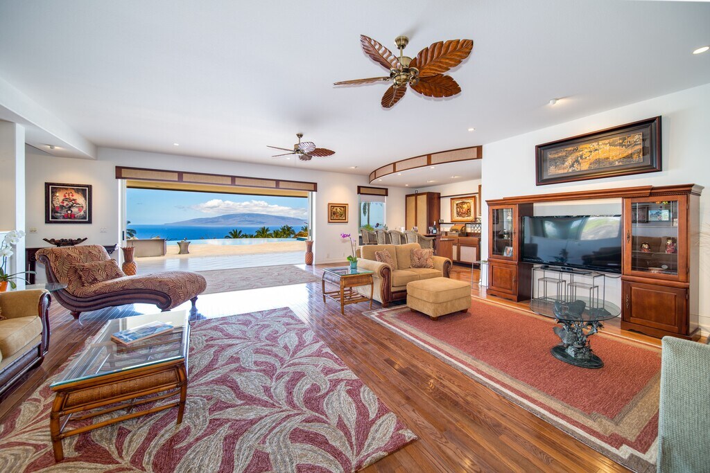 Aloha and welcome to your secluded sanctuary at 837 Kai Hele Ku St Unit A—an exquisite 4,817 sq. ft., 4-bedroom, 4.5-bathroom estate in Launiupoko, one of West Maui's most charming communities known around the world for its amazing views, agricultural prevalence, convenient location, and friendly neighbors. This residence combines contemporary design with seamless indoor-outdoor living on the slopes of the West Maui Mountains. Entering the home, you are greeted by an expansive Great Room that opens onto the lanai via a wall of disappearing pocket doors, allowing for panoramic ocean views centered on the neighboring island of Lana’i. Experience the joy of indoor-outdoor living as pleasant trade winds flow through the spaces, enhancing the ambiance and keeping the temperature cool while you enjoy year-round world class sunsets. The Great Room also features warm hardwood floors, fine stonework, comfortable sitting areas, and a large wet bar with seating for four. The open floor plan integrates the dining, living, and kitchen spaces. The spacious gourmet kitchen is a chef's dream, featuring top-of-the-line appliances, ample counter space, and a breakfast bar for meal prep and casual dining. Outdoors, the wrap around-covered lanai provides 2,769 sq. ft of shade and is ideal for outdoor dining and entertaining—rain or shine. Just beyond, the shimmering infinity pool overlooks the dramatic panorama, while the home's 1.3 acres offer ample space for games and picnics. Between December and May, it’s likely you’ll experience complimentary whale watches as you relax by the pool. The mature landscaping and lush trees including local varieties of mango and papaya enhance the tropical ambiance. A barbecue area and spa tub offer the best of outdoor entertainment.. Each of the four spacious bedrooms offers a tranquil retreat and comes with an en-suite bathroom for ultimate privacy and convenience. Two bedrooms are located downstairs, with one being ADA accessible. An elevator provides easy access to the second floor and the two additional bedrooms. On the second floor, a gorgeous, covered, wraparound lanai offers an elegant, shaded perch from which to relax and enjoy the views. The property includes a two-car garage and abundant storage for your exclusive use. A photovoltaic system ensures energy efficiency and central air conditioning in the bedrooms. The home's location in the green and well-landscaped Launiupoko neighborhood on the hills of West Maui ensures a quiet setting while being conveniently close to shopping, dining, and entertainment in Lahaina and Ka'anapali. Experience the best of island living at 837 Kai Hele Ku, where luxury meets tranquility in one of Maui's most sought-after locations. Screening: Tenant agrees to submit to third party (TransUnion) tenant screening prior to approval Rent: $15,0000 plus $708 General Excise Tax (4.712%) Security Deposit: $15,000 Owner shall provide the following utilities and services to the Tenant: Pool Maintenance Services, Landscaping, and Trash. Tenant is responsible for Electricity, Water, Internet, and Propane, which will remain in the Owner's name and be billed to the Tenant following receipt of each of each monthly bill. Term: Minimum 6-month lease term, but open to a longer term. Available: 12/22/2025 NO smoking, NO drugs, NO Pets. This beautiful executive home is being offered for rent fully furnished so it has all you need to effortlessly enjoy the Maui lifestyle. Set up your showing appointment today!