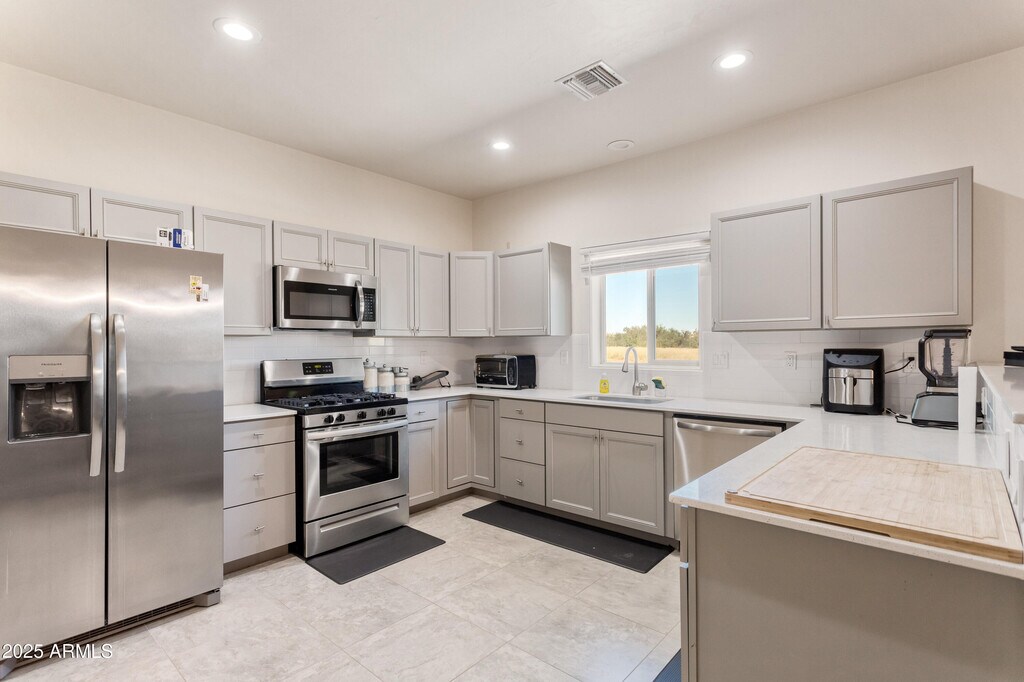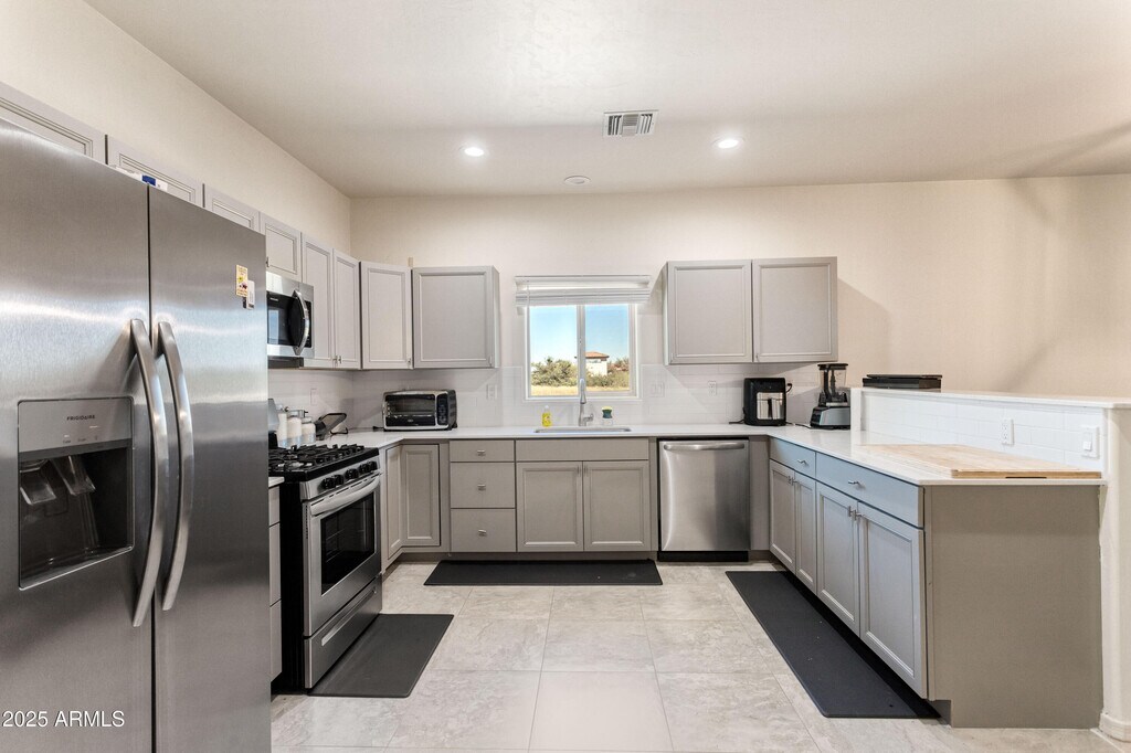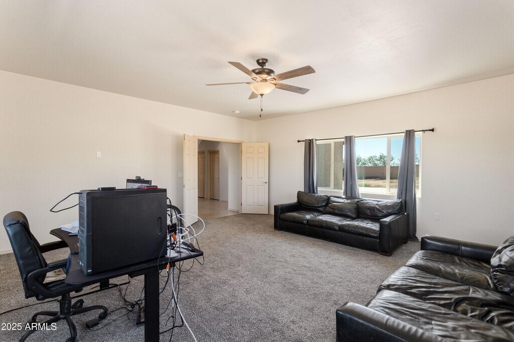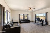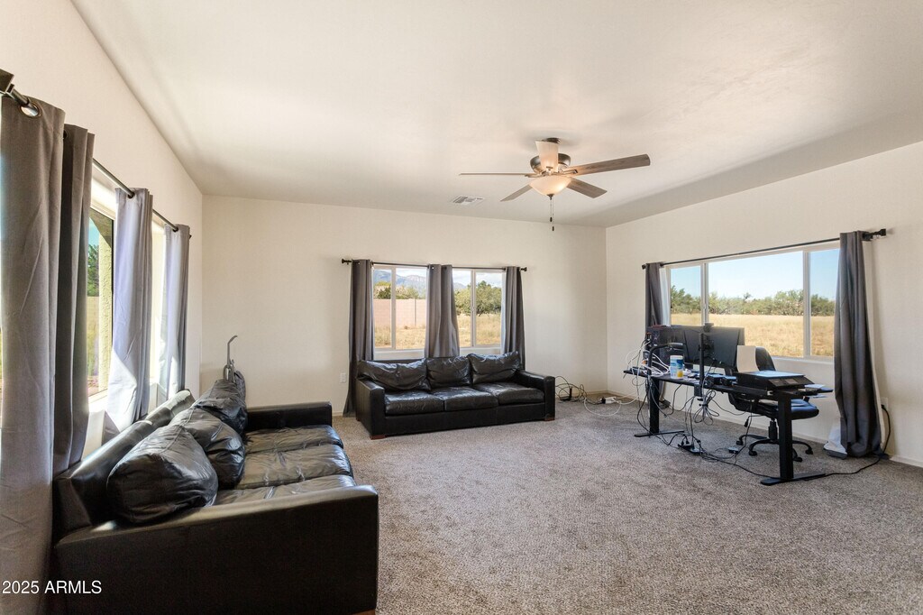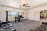 Stephanie LeidenheimerGorgeous custom built sitting on over 3 acres with amazing views that you can enjoy on a huge patio. Step inside the 3 bedroom and 2 bathroom home with the open concept living, dining and kitchen space. Bonus with a separate GREAT ROOM and furnished! Tile floors throughout the living areas and carpet in the bedrooms. Spacious laundry room inside. 3 garage space allows for all the covered and protected parking and storage you need.
