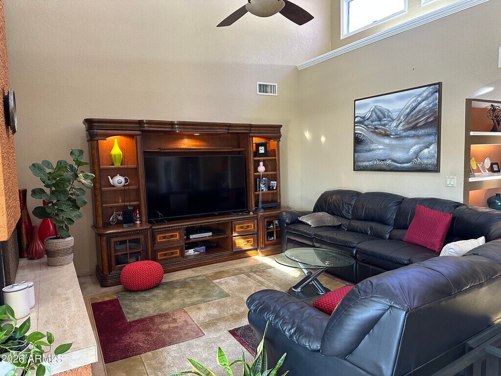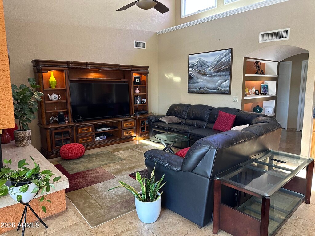 Located in the coveted Paradise Manor of McCormick Ranch,this stunning Scottsdale home is a must-see. Enjoy one of the city's best-managed HOAs with approximately 18 miles of walking trails,tennis courts,and scenic lakes. Exceptional curb appeal is enhanced by solar panels that significantly reduce electric bills.Designed for both family living and entertaining,the home offers spacious rooms,excellent flow,open-view patios,elegant French doors,and solid oak moldings and doors throughout. The huge master bedroom features dramatic ceiling heights reaching close to 18 feet in some areas,along with a complete master bath and fantastic closets. A dedicated office with tile flooring and a true backyard paradise complete the home. Close to schools and top medical facilities.