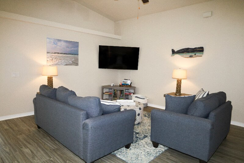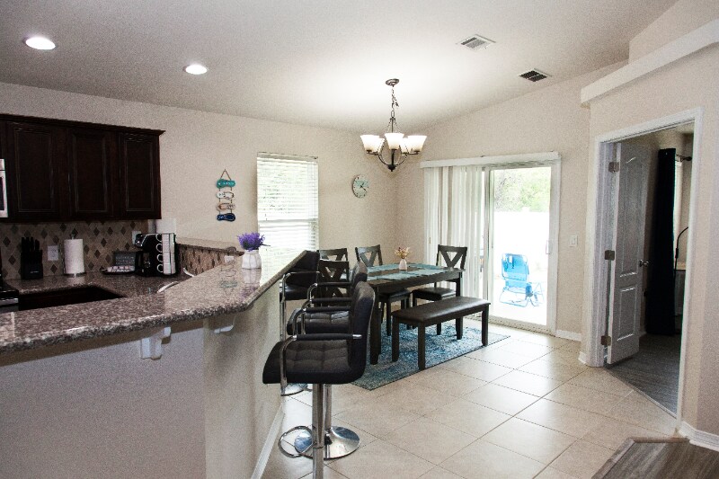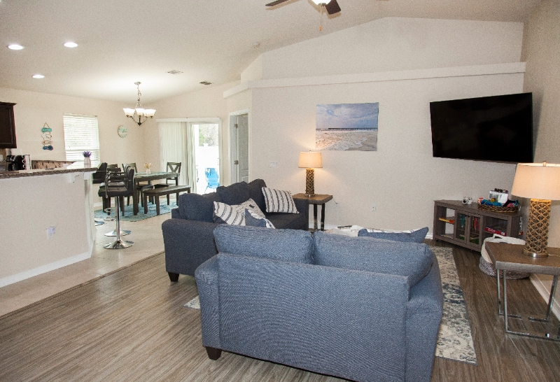 Property Id: 1206549 We welcome you to Beachy Bliss the Perfect Stay perfect for families and longer stay Only 3 miles from Navarre beaches with white sands and emerald waters, parasailing, diving, snorkeling, fishing, and star gazing Cozy vacation 3 bedroom/2 full bathroom house, 2 kings,2 bunk, + 2 baby cribs, 2 full bathroom and a game room house that includes a modern kitchen fully equipped with bar stools, full dining area, comfortable living room, table tennis, and basketball arcade, dryer/washer, fire pit & gas BBQ grill, free wifi, and 65 inches smart HDTV Huge fenced backyard in a quiet family neighborhood