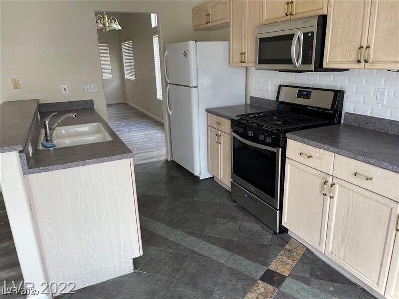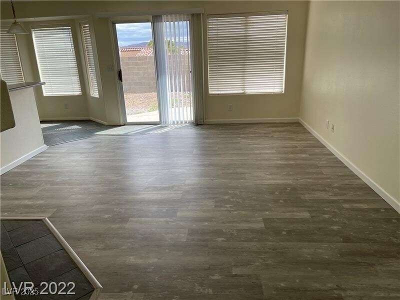 Beautiful single-story home in Henderson in the Horizon Ridge area in the Palm Canyon development lined with palm trees street for an enchanting feeling of this desirable neighborhood. Open plan, 3 bedrooms, 2 baths, 2-car garage. Well-designed with updated floors, a full formal dining room that flows into the kitchen, 2-way gas fireplace between them, a breakfast nook with windows overlooking the backyard. Matured front yard landscape and inviting backyard with serene mountain views, perfect for your relaxation. The huge Primary Bedroom is equipped with walk-in closet & a secondary closet, dual sink & a separate tub & shower and includes a formal vanity area with dedicated chair area, perfect for dressing up. There is also a separate office space in the Primary Bedroom with windows overlooking the backyard. Large 2-car garage and long driveway and wide streets with ample parking space. MOVE IN READY, MAKE THIS YOUR HOME.