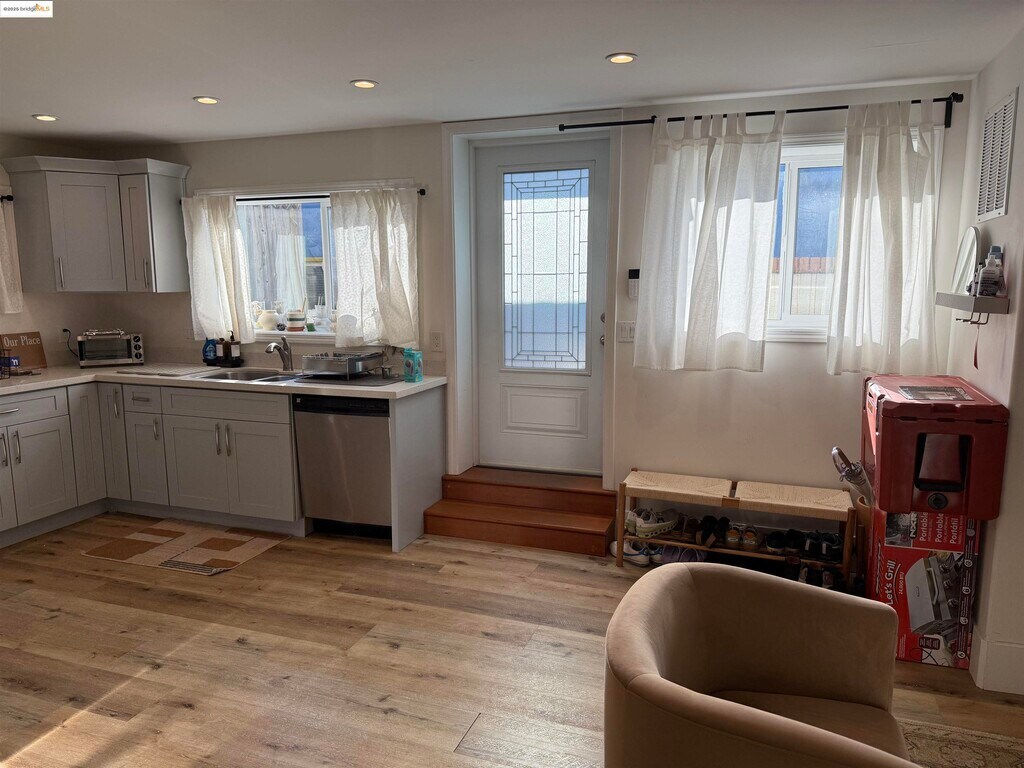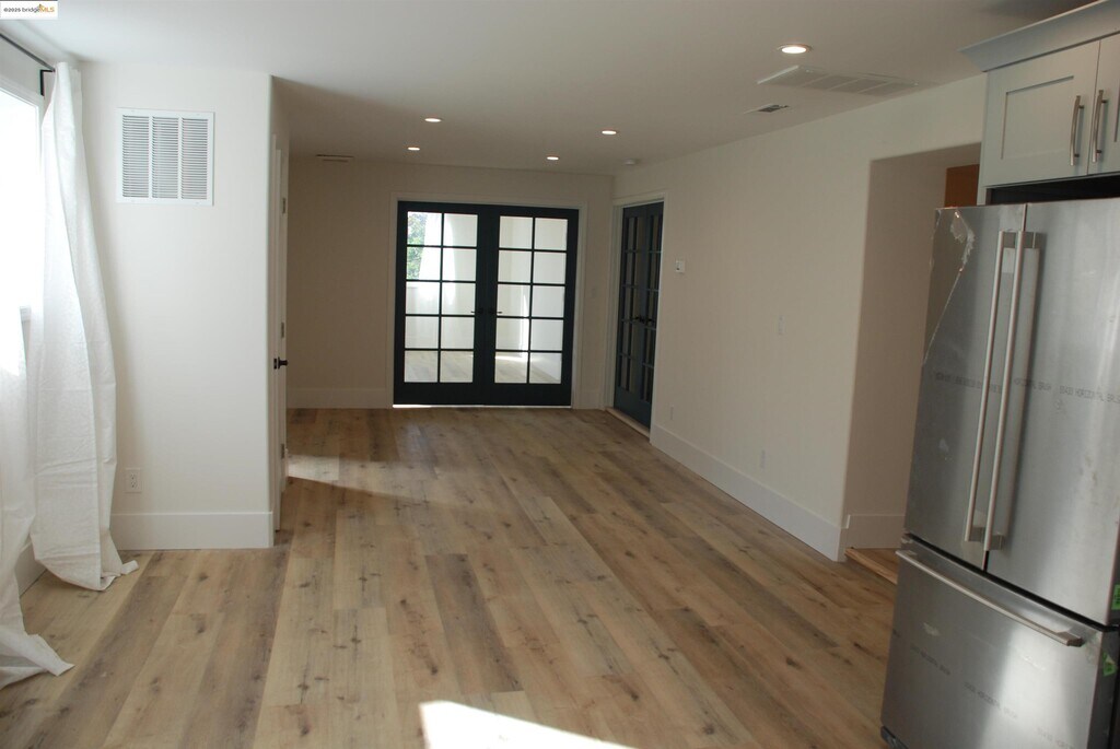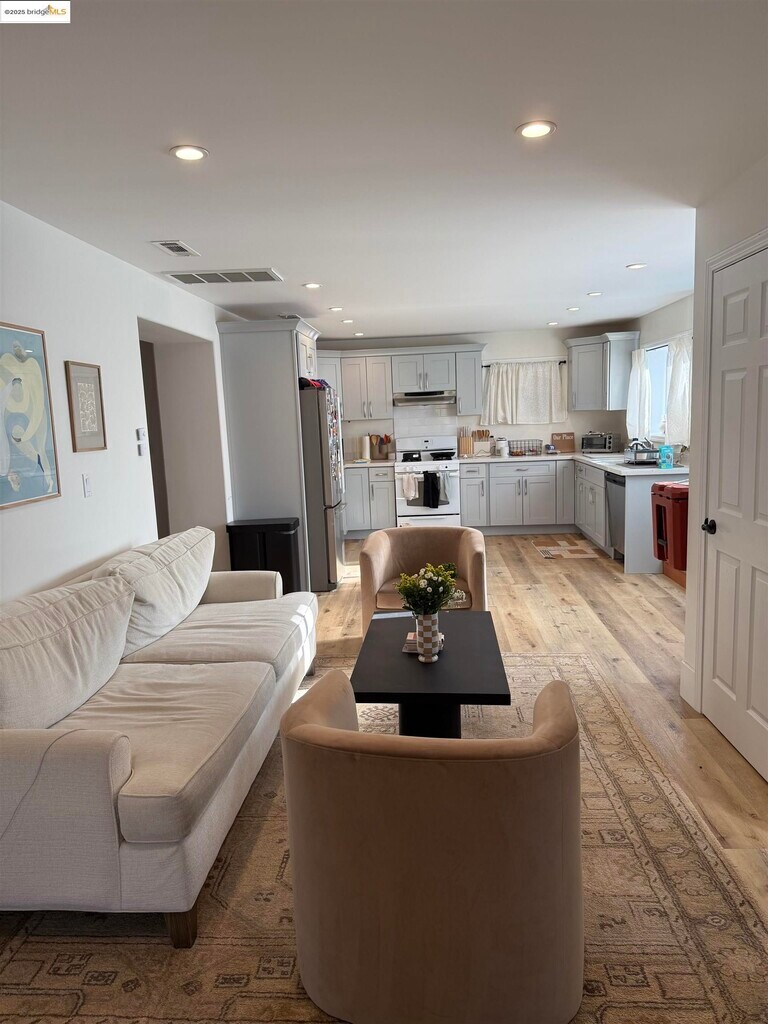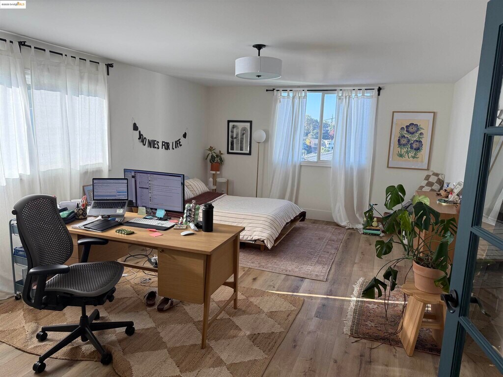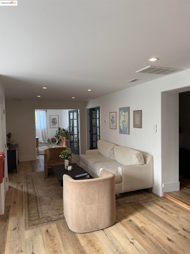 Gorgeous and spacious 2-bedroom,2-bath lower unit in a duplex with an additional media room,set on a beautiful residential street just blocks from Lake Merritt. Engineered flooring,recessed lighting,indoor laundry,an open floor plan,and a welcoming front patio create a comfortable and inviting living space. Both bedrooms are generously sized and thoughtfully separated for added peace and privacy,each featuring stylish French doors. Situated in a pocket that feels like a “city within a city,” the property is close to the farmer’s market,the iconic “Necklace of Lights” around Lake Merritt,and the many eateries along Lakeshore and Grand Avenue. Enjoy charming views of gentle hills and a lush floral display of blooming roses,decorative grasses,and succulents—all just moments from the cafés and restaurants of Lakeshore and Grand Ave.