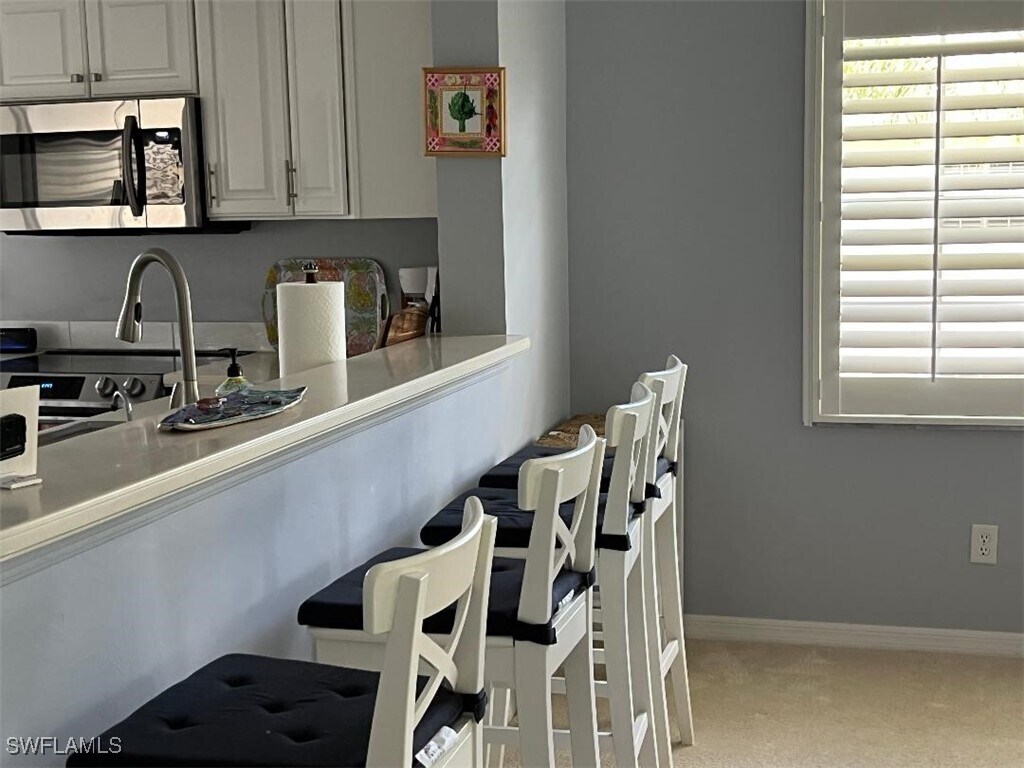 Rarely available full 3-bedroom plus Den in Lely. 2-story with private elevator,2-car garage and a serene view. January and/or February are available. Kitchen has stainless steel newer appliances,large table/chair area overlooking window,as well as bar seats,and pantry. Den area is adjacent with desk and tv to relax. Living room is bright and offers lots of seating option,while overlooking the trees,lake and lovely views. Main bedroom with King size bed is separate from 2 other bedrooms and has ensuite bathroom with separate shower,2 sinks and 2 closets. One guest bedroom is very spacious,king bed (2-twins together),private bathroom,desk,window seat and couch to enjoy your private suite. The 3rd bedroom offers 2 twin beds and located very close to guest bath. Full size laundry room,private elevator and open floor plan complete the package. Don't delay. Community Pool and spa are within walking distance and also a grill and community room.
