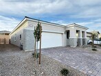 Stunning new construction home in the master-planned community of Skye Canyon! This move-in ready 3BD/2BA single-story features an open-concept great room with wood-look tile throughout main living areas. Chef's kitchen boasts quartz countertops, large center island with undermount sink, white shaker cabinets, stainless steel appliances, and tile backsplash. Primary suite includes walk-in closet and spa-like en suite with dual vanities and glass-enclosed shower. Secondary bedrooms feature plush carpet and share a full bath with tub/shower combo. Laundry room with included washer/dryer and upper cabinetry. Tankless water heater, 2-car garage, and paver driveway. Enjoy all Skye Canyon community amenities including pools, fitness center, and trails!
