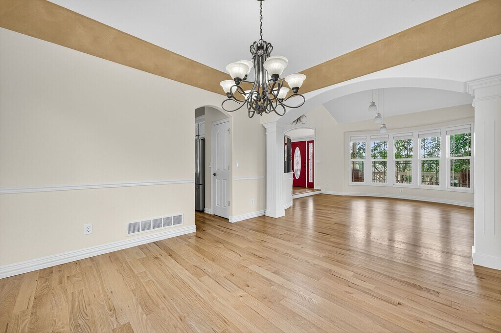 Stunning and secluded home nestled among towering pines on over half an acre in one of the area’s most desirable neighborhoods. Enjoy the feeling of a peaceful mountain escape while staying just minutes from everything you need. Step inside to find gleaming hardwood floors and a thoughtfully updated layout that combines elegance and comfort. The spacious kitchen is perfect for everyday living or entertaining, featuring high-end stainless-steel appliances, generous counter space, and an open flow into the family and dining areas. Upstairs, the primary suite offers a true retreat with a cozy sitting area and a luxurious five-piece bathroom. Three additional bedrooms provide plenty of room for family or guests. The finished basement adds even more versatility with a large theater room, wet bar, bedroom, and ample recreation space. Outside, unwind in your private backyard oasis or take in mountain views from the front deck. The oversized three car garage includes two Tesla EV chargers a rare and convenient bonus. Located on a quiet cul-de-sac, this home is ideal for those seeking space, serenity, and a true Colorado lifestyle. Experience comfort, style and schedule your private showing today and make this exceptional home yours.