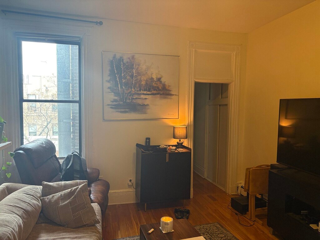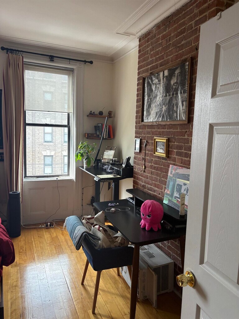 Spacious 2 bedroom , 1 bathroom, living room, and dining room, office area with hardwood floors throughout , Bedrooms on opposite sides of the unit , exposed brick, coin operated laundry in the basement, conveniently located to A&P, Shoprite Super markets, 9th street Park, light rail. Bus to path right outside building, NYC bus on Clinton Street. Pets may be considered by Landlord,