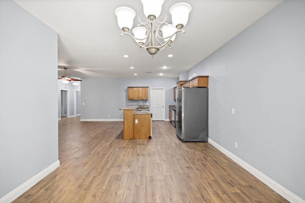 Welcome home to this stunning four-bedroom, two-bath, single-story residence showcasing quality craftsmanship and modern comfort throughout. The charming all-brick exterior and inviting front porch set the tone for this newer-construction home. Step inside to find an open-concept living and kitchen area with tall ceilings, wide hallways, and ceramic wood-look tile flooring throughout. The spacious kitchen features rich maple cabinetry, a large center island, stainless steel appliances, a pantry, and a dedicated dining area with a sliding glass door that fills the space with natural light. The expansive primary suite offers an elegant tray ceiling, a large walk-in closet, and a luxurious ensuite bath complete with a soaking tub, separate shower, and dual vanity. Additional highlights include a laundry room with built-in cabinets and extra storage, ceiling fans in every bedroom, and a guest bath with a shower-tub combo. Out back, enjoy a fully fenced yard perfect for entertaining — complete with a cozy fire pit. A two-car garage provides plenty of parking and additional storage. This move-in-ready home offers the ideal blend of space, style, and convenience — all just minutes from Navarre’s beautiful beaches, shops, and schools.