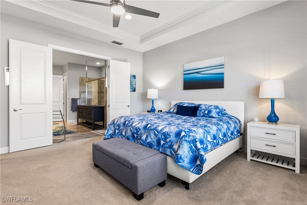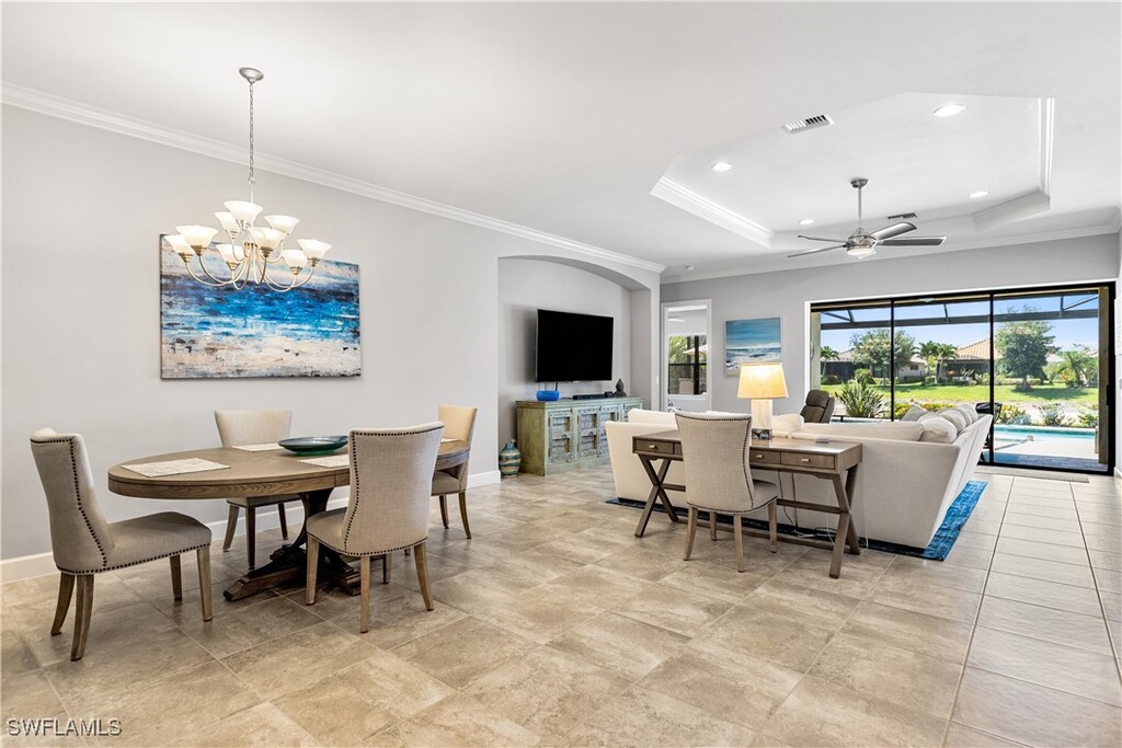 Welcome to this luxurious home located on a prime waterfront lot in the prestigious Esplanade at Hacienda Lakes. This is the perfect home away from home! Spanning almost 3000 square feet of air-conditioned space,this home boasts perfect southern exposure and stunning lake views. The spacious foyer welcomes you into a comfortable family room. At the same time,the kitchen shines with sleek granite countertops,an oversized island,custom cabinets,stainless steel appliances,and a natural gas cooktop. This highly functional open-style floorplan will impress. The master bedroom features a trey ceiling and has an en-suite bathroom complete with a dual vanity,a large double-entry shower with dual shower heads,and a generous walk-in closet. Tile flooring is found throughout the house,with plush carpet in the bedrooms. The outdoor area is perfect for entertaining,featuring a remote-controlled gas-heated pool and spa,an outdoor kitchen with a built-in gas BBQ grill and beverage cooler,and a fireplace for cozy evenings. Home has been meticulously cared for and is tastefully furnished and decorated. Esplanade at Hacienda Lakes is a gated community offering a true resort lifestyle experience. An abundance of amenities includes a clubhouse with a well-equipped fitness room,community room,resort-style heated pool,spa,poolside cabanas,lounge chairs,umbrella tables,seating,a fire pit,tennis and pickleball courts,a dog park,and a playground. Ideally located off Collier Boulevard in sunny Naples,this community places residents near beautiful Marco Island and stunning Gulf beaches. A short drive will take you to downtown Naples,where you can enjoy upscale shopping,dining,and cultural attractions. Experience the extraordinary range of resort-style amenities and the vibrant lifestyle that Esplanade at Hacienda Lakes has to offer.