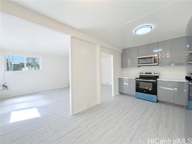 Fully renovated in 2025. 5-bed, 2-bath, 4-parking unit located on the ground floor of a 2-story duplex house in Makaha. This unit is approximately 1,400 SQ FT of living area. Features: vinyl flooring throughout, stainless steel appliances (refrigerator, microwave hood, range oven), ceiling fan in the living room, lots of storage, washer & dryer. Spacious yard, mango trees and other fruit trees to enjoy. Near beaches, gas stations, bus lines. Rent includes water, sewer, and yard maintenance. Tenant pays for electricity, cable and internet. No pets, no smoking. Renter's insurance is required. $25 non-refundable application fee per adult applicant.