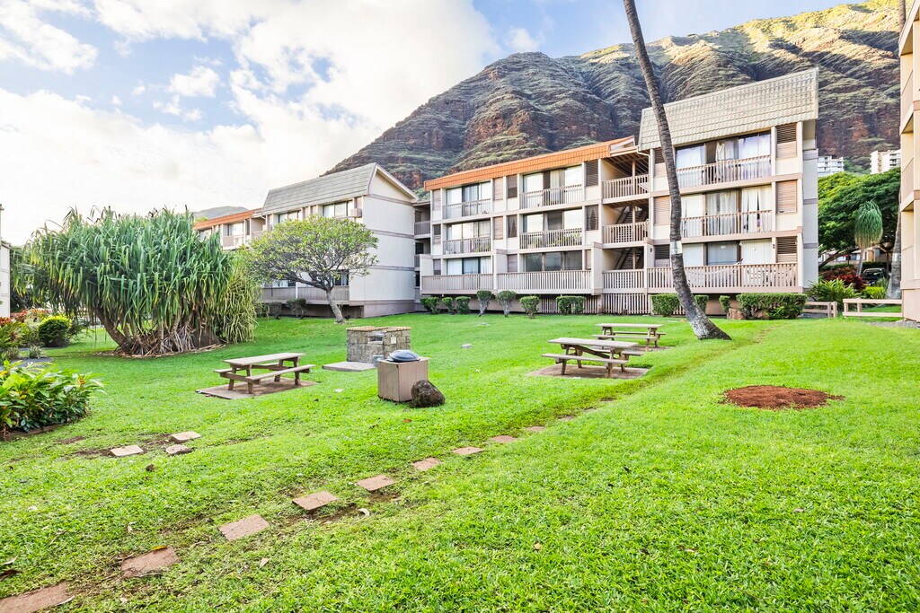 Enjoy relaxed island living in this well-maintained 2-bedroom, 1-bath condo located in the desirable Makaha Valley Plantation community in Waianae. Nestled in a lush valley setting, this unit offers cooling trade winds, peaceful surroundings, and scenic mountain views. The functional floor plan features an open living and dining area, a private lanai to enjoy the outdoors, and a comfortable kitchen with ample storage. Residents enjoy resort-style amenities including swimming pools, hot tubs, tennis and basketball courts, BBQ areas, 24-hour security, and beautifully landscaped grounds. Conveniently located just minutes from Makaha Beach, hiking trails, and local shopping—perfect for those seeking a quieter lifestyle with easy access to nature. Available now. Don't miss this opportunity to live in one of West Oahu's most scenic communities. Schedule your private showing today—this unit won't last! Alfonso Martinez (RS-87143) Island Breeze Team