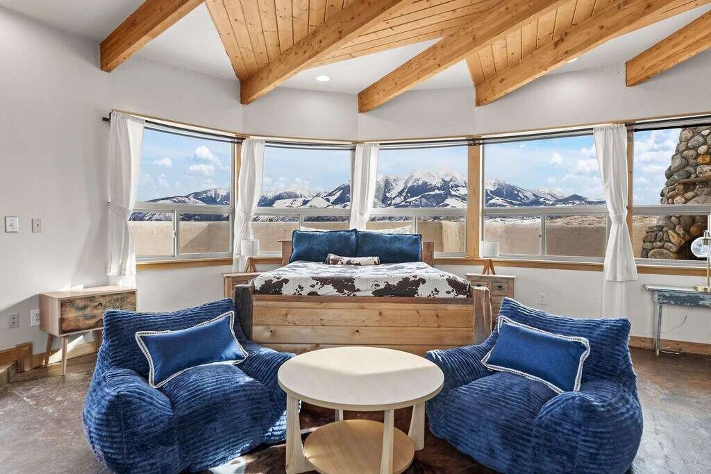 Feel at home in this expansive, secluded 5-bedroom mountain retreat in Emigrant, Montana, offering breathtaking panoramic views in every direction. This home features a fully equipped kitchen, a spacious living room, and an expansive outdoor area with an outdoor fire pit. The primary bedroom features a king-size bed, three additional bedrooms each feature a queen-size bed, and a fifth bedroom features one queen-size bed and three single beds. With 3.5 bathrooms, guests will enjoy convenience and privacy. Two dogs are allowed for an additional fee of $150 per stay. Staying in Emigrant means you’re choosing a quiet, rural, nature-focused lifestyle with scenic mountain and valley views, open space, privacy, and proximity to rivers and forests. Driving distance from Emigrant to Bozeman is about 47 miles, a drive of approximately 45–50 minutes under normal conditions. The hot tub and sauna are currently unavailable and will not be in use until January 2026. Renting a car is strongly recommended, as the area is rural and ride-shares are limited. Highways are paved and easy to drive, but local roads near the home may be gravel. In winter, 4WD/AWD is recommended. Check-in time is 4:00 PM, and check-out time is 11:00 AM. For the comfort of all guests, no smoking is allowed indoors; please smoke outside. The maximum number of guests allowed is as indicated in your booking details; hosting additional overnight guests without prior approval is not permitted. There are cameras outside of the home for your safety, and they will be recording during the reservations; tampering with these will result in a fine. [SI]