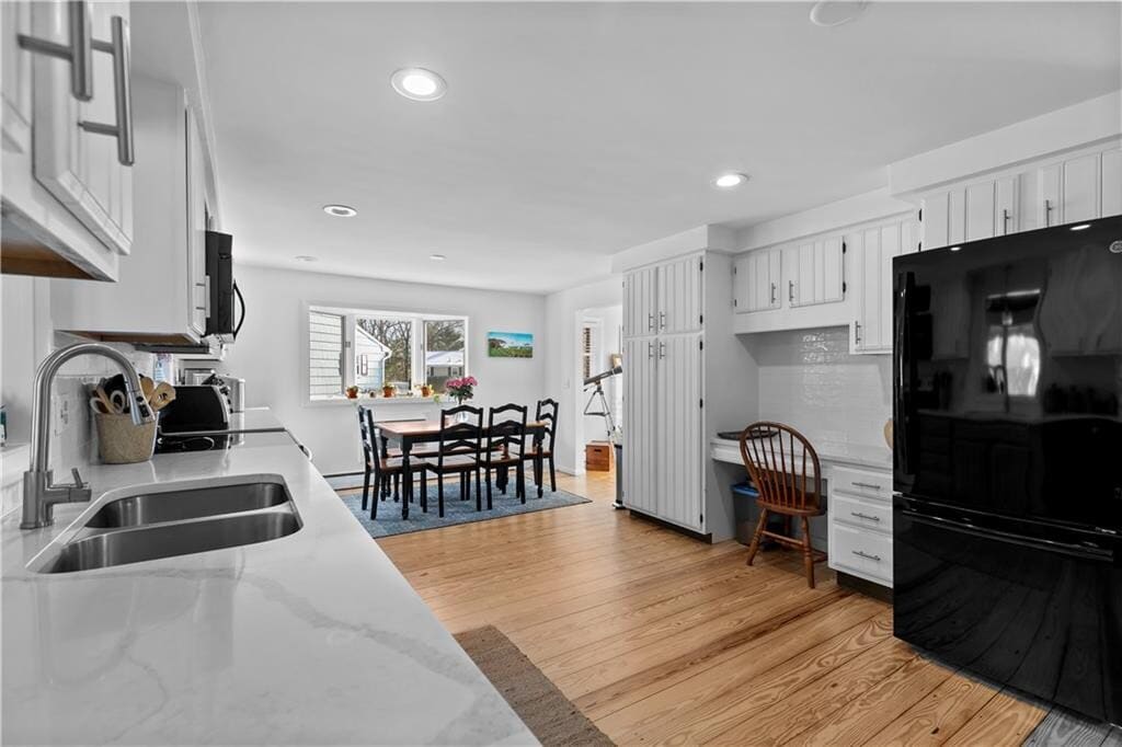 Bright and renovated tri-level home available as a yearly rental starting July 15,2026! This sweet home offers plenty of space,with three separate living areas to enjoy. The front door entry leads to a comfortable formal living area with hardwood floors. The charming kitchen has been updated with quartz countertops and freshly painted cabinets,along with new appliances. The family room has vaulted ceilings and abundant windows letting in the natural light. The second floor has 3 bedrooms and a full bathroom. The garage entry level has a spacious full bathroom and room that’s the perfect space for an office,playroom or guest area. The finished lower level has a recreation room with bar,perfect as a media room. There is an unfinished area with laundry,perfect for storage. The fenced in backyard is an entertaining oasis complete with patio,outbuilding and a generous grassy area for play! Located in desirable Birchwood Manor,this home is close to Goddard Park,and has easy highway access for a quick ride to the Naval base in Newport. Enjoy all that North Kingstown has to offer from this convenient location! MLS ID 1405423
