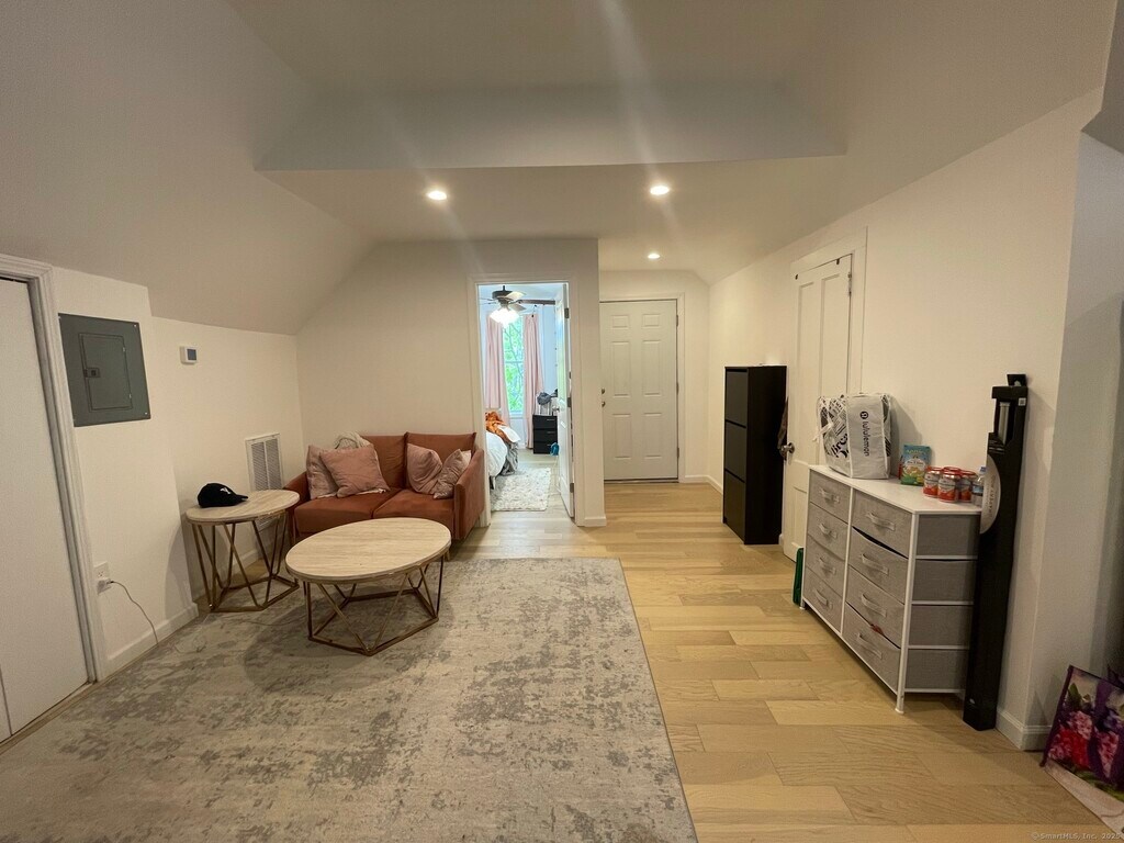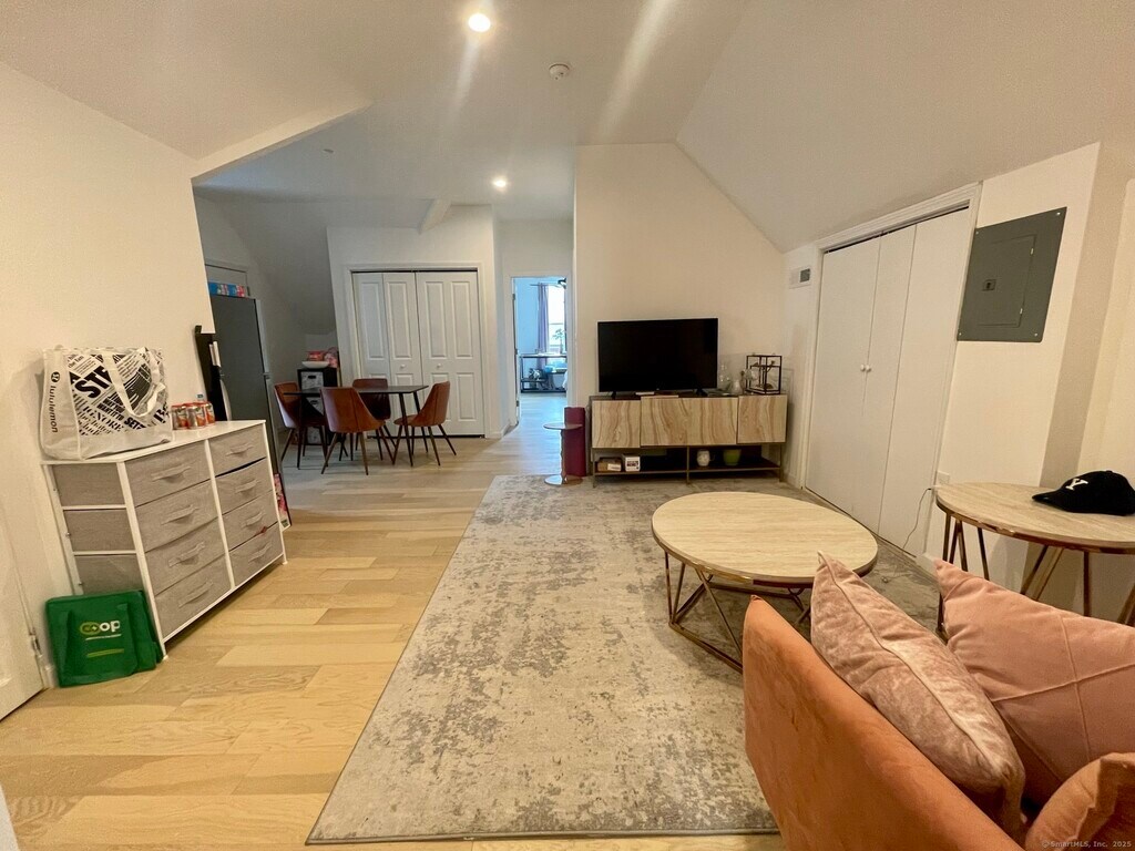 Call for Availability - Great third floor apartment fully renovated with open layout, new hardwood floors, new gas heat and central air, laundry in unit. Kitchen with stainless appliances, gas stove, built in microwave. Recessed high efficiency LED lighting throughout, off street parking and shared yard. Across the street from Yale Shuttle, central to parks, restaurants and cafes. Prime East Rock location! MLS# 24118041