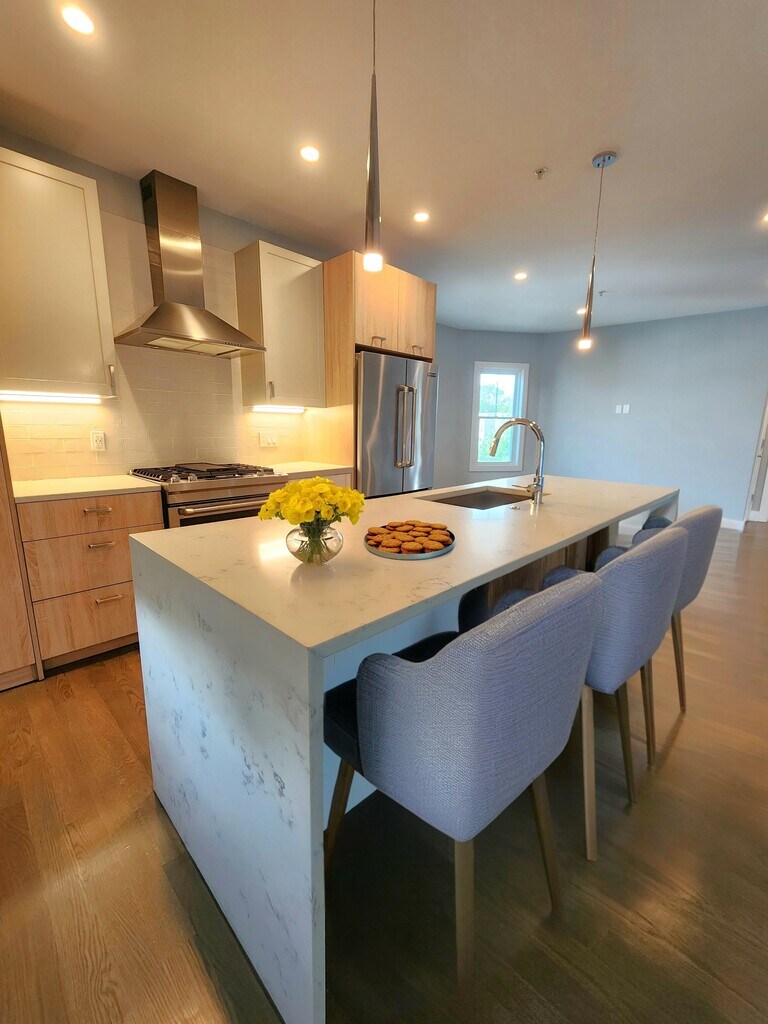 Stylishly renovated 3-bedroom, 2-bathroom duplex penthouse in the heart of Savin Hill with 2 parking spaces! The open-concept main level features a sunlit living and dining area, a chef’s kitchen with quartz waterfall countertops, custom cabinetry, JennAir appliances, and a flexible nook with direct access to a private deck. Two spacious bedrooms with large closets and a full bath complete this level. Upstairs, the primary suite offers skylights, his-and-hers closets, and a spa-like bathroom with radiant heated floors, double vanity, soaking tub, and rain-head shower. French doors lead to a private rooftop deck with breathtaking views of the Boston skyline. Additional features include Nest-controlled central air, in-unit laundry, surround sound wiring, a new heating system (2024), and full interior repaint (2025). Conveniently located near JFK/UMass and Savin Hill Red Line stations, beaches, shops, and restaurants. No-smoking. No pets.