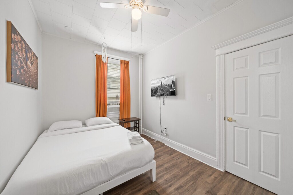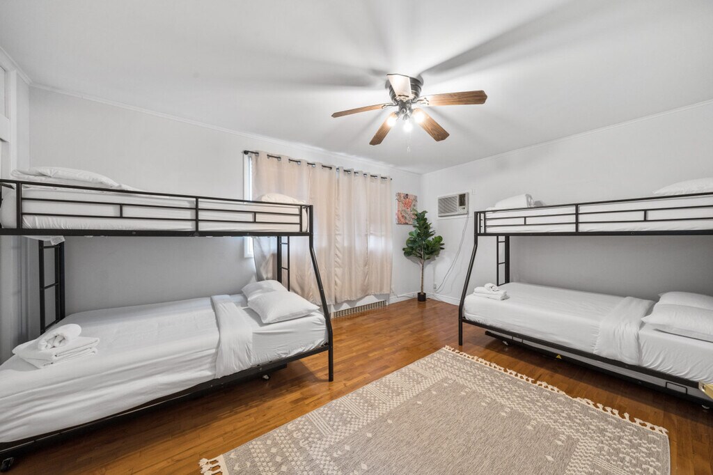 Welcome to your group's dream getaway! This stunning 4-story home boasts 8 bedrooms and 6 bathrooms and sleeps up to 30 guests across 16 comfy beds. Perfect for family reunions, wedding groups, or big get-togethers, everyone gets plenty of room to relax, recharge, and reconnect. You'll also enjoy a private driveway that accommodates two cars and a fully fenced-in backyard with outdoor seating and lawn games, so the fun continues outside. Nestled in one of the nicest neighborhoods in town, you're just steps from beautiful Hudson County Park with lakes, playgrounds, walking trails, and sports courts for everyone to enjoy. Beyond the park, you're perfectly positioned for NYC and North Jersey attractions: approximately 20 minutes to Manhattan, 15 minutes to MetLife Stadium, Prudential Center, and American Dream Mall, and 20 minutes to Jersey Gardens Outlets. This quiet, family-friendly neighborhood is lined with tree-shaded streets and friendly faces. You're within walking distance of cafés, playgrounds, and the Hudson-Bergen Light Rail, yet just minutes from the energy of Manhattan. It's the perfect blend of suburban peace and city convenience, ideal for groups wanting easy access to everything without the hustle and bustle right outside the door. Getting around is convenient with Cape Liberty Cruise Port a 5-minute drive away, Newark Airport 15 minutes away, and JFK and LaGuardia Airports about 45 and 35 minutes by car, respectively. Multiple NJ Transit and private bus lines are within walking distance, with approximately 30–45 minutes to the World Trade Center area and 45 minutes–1 hour to Port Authority Bus Terminal in Midtown Manhattan. The Hudson-Bergen Light Rail connects to PATH trains, putting you in Manhattan, Brooklyn, or Staten Island in about 25–40 minutes depending on your destination. For a scenic commute, hop on the NY Waterway Ferry from nearby Weehawken or Jersey City to Midtown or Downtown Manhattan, offering a relaxing ride with skyline views. Guests will have full private access to all four floors of the home, including every bedroom, bathroom, kitchen, and living area. The private driveway is yours for up to two cars, and the fenced backyard with seating and lawn games is completely for your group's enjoyment. Check-in is contactless with a smart lock for easy entry. We respect your privacy but are always here to help. During your stay, you'll have 24/7 access to us by phone or text if you need anything, from local tips to extra supplies. We live nearby and can pop over quickly if an issue arises, but otherwise, we'll give you complete space to enjoy your getaway at your own pace. Registration Number: STRL-25-0024