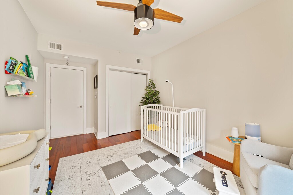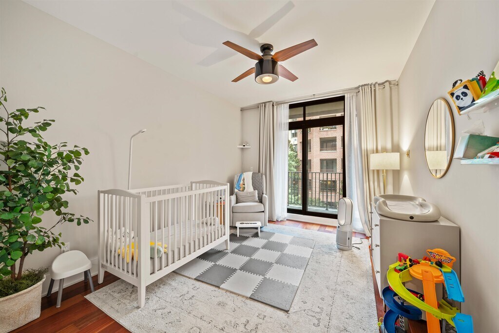 Welcome to Unit 4B at 84 Willow Avenue — a beautifully appointed 2-bedroom, 2-bath residence located in one of Hoboken’s most desirable boutique buildings, just minutes from the PATH. Built from the ground up in 2015, this modern steel-and-concrete construction offers exceptional privacy and durability, along with premium amenities including elevator access, and a professionally landscaped common roof deck. Other perks are that there are only two units per floor, and the building has a backup generator! This south-facing unit is bathed in natural light and showcases stunning views of the Freedom Tower from both the spacious living/dining area and the primary bedroom. Enjoy seamless indoor-outdoor living with two private balconies – one off the living space and another from the second bedroom. Residents also have access to a beautifully designed shared patio on the second floor, complete with a grilling area, perfect for entertaining or relaxing outdoors. home complete for it's new owners.