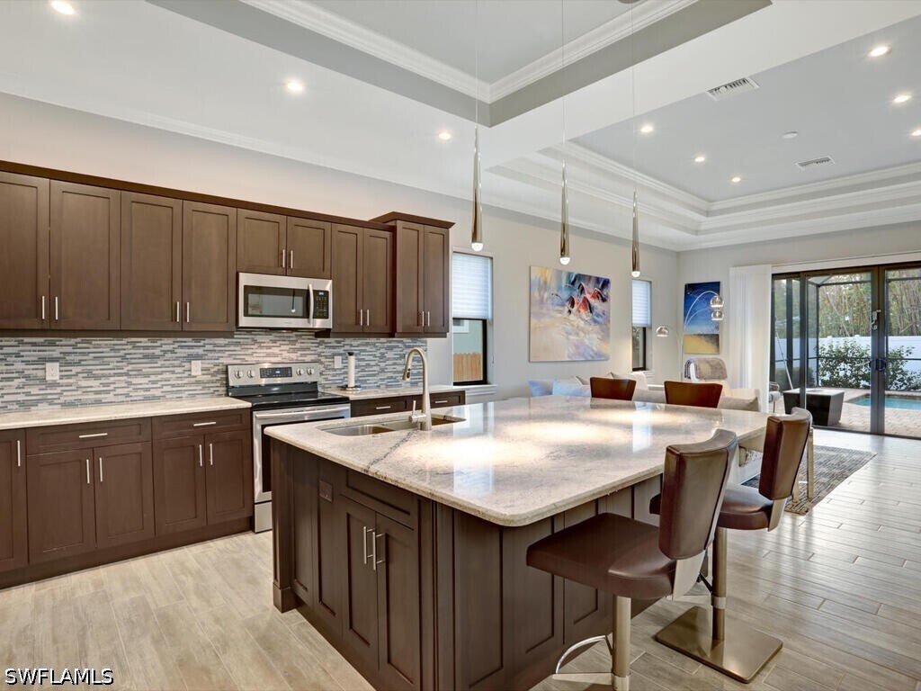 Available January,February,March,and April 2027. Monthly rentals only. Your Winter Getaway! Walking and biking distance to Vanderbilt Beach,Delnor Wiggins State Park,Pavilion Plaza,and Mercato. This beautiful 2015 built rental boasts 3 bedroom plus den,3 full bathrooms,and a 2 car garage. The upgrades include tile floors throughout,tray ceilings in the great room & kitchen,gorgeous custom cabinets,screened in lanai with heated pool and sittings area,double vanity in master bathroom,oversized island,and outdoor television. The home has been freshly decorated and painted. We provide 4 beach chairs,umbrella,beach cart,and 2 bicycles. Master bedroom furniture is currently being switched out as it is going with the owner to a new home. The den is not pictured,it has bunk beds and a desk,some artwork is being switched out,the Peloton has been removed.