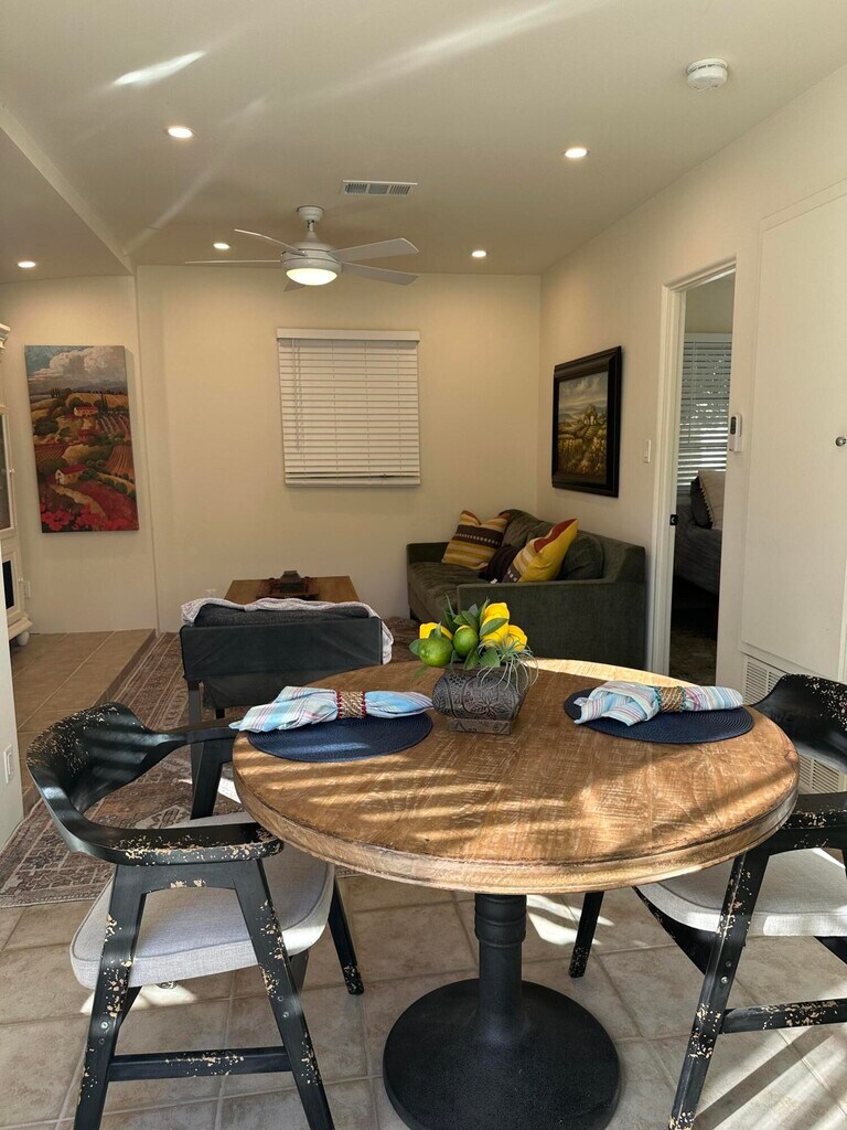 Charming and beautifully appointed one-bedroom Spanish-Mediterranean Casita condo,offering the perfect blend of comfort and style,offering tile floors,tasteful furnishings throughout. The fully equipped kitchen features sleek tile countertops,refrigerator,convenient countertop microwave. You'll also love the private laundry room for added convenience. Step outside to your own serene patio,surrounded by a lush,meticulously maintained gardenideal for relaxing or entertaining. This cozy retreat truly has it all,with all the amenities you need for a relaxed and enjoyable lifestyle,walking distance to downtown Palm Springs.(also available as seasonal at $3500 per month)