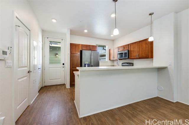 Welcome to Kahiku at Mehana! Completed at the end of 2016, this new-ish two-story townhome features 2 beds, 2.5 baths, an open-concept living/dining/kitchen area, as well as a front yard, back yard, and detached 1-car garage with 2 additional parking for 3 parking total! One of the best parts is that this particular unit is NOT on any main or through street, so you get privacy, and gorgeous mountain views! If you're unfamiliar with Mehana, this is the place to be! This community is conveniently located across the street from grocery stores and restaurants, contains kiddie parks, doggie parks, walking paths, a Trike Track, the MAC with a community pool and rec center, small businesses, and so much more! Rental fee includes water and sewer. Pets are allowed.