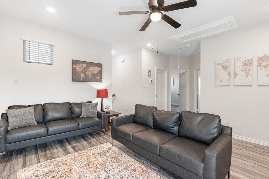 Available for late DECEMBER MOVE-IN and FULLY FURNISHED! Welcome to this exquisite D.R. Horton two-story home located in the desirable Midtown Reserve community of South College Station. This home is turnkey ready with all furnishings included! Just 5 minutes from Tower Point,you’ll enjoy convenient access to shopping,dining,medical facilities,and more. Step inside to an open and airy layout designed for modern living. The primary suite on the main level offers a true retreat with a stylish barn door,soaking tub,separate tiled shower,dual sinks,and a spacious walk-in closet. Upstairs,you’ll find three additional bedrooms and a versatile flex room with its own full bath that could be used as a game room,craft space,home office,or guest suite. Step outside to the covered patio with ceiling fan and enjoy a large backyard for gatherings,play,or quiet evenings outdoors. Don’t miss your chance to experience this beautiful home in person and schedule your private showing today! MLS# 4942021