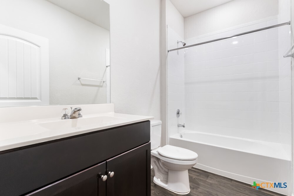 Step into comfort and space in this well-designed two-story home located in the desirable Arroyo Ranch community in Seguin. This 4-bedroom,3 full bath home offers a functional open floor plan ideal for both everyday living and entertaining. Upon entry,you'll find a convenient first-floor bedroom and full bathroom-perfect for guests or a home office-along with a laundry room complete with washer and dryer. Continue into the open living area that flows seamlessly into the kitchen and breakfast nook. The kitchen features granite countertops,ample cabinet space,and comes fully equipped with a refrigerator,stove/oven,dishwasher,and microwave-making it truly move-in ready. The primary suite is located just off the living room and includes a private full bath with a walk-in shower,single vanity with extended countertop space,and a spacious walk-in closet. Upstairs,enjoy a large second living area or game room,along with two generously sized secondary bedrooms that share a full bathroom. Offering space,functionality,and comfort,this home is ready for its next residents. Enjoy an unbeatable location with easy access to Highway 46,less than 30 minutes to downtown New Braunfels,and under 10 minutes to the Guadalupe River-making it perfect for both convenience and weekend relaxation. The community also offers great amenities for residents,including a pool and park/playground.