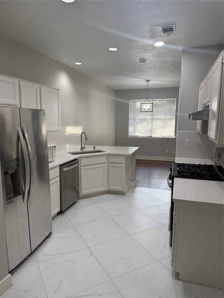 Gorgeous and updated 2 story condo with three bedroom and two and a half baths and its own 2 car attached garage is now for lease in a fantastic location and highly sought for neighborhood located in Central Northwest Austin. The condo has a townhouse feel with high ceilings, gas fireplace and its own fenced back patio. This property is less than 15 minutes to downtown Austin, nine minutes to the Domain and walking distance to shops and restaurants. The home has been beautifully updated with new quartz kitchen counter tops and backsplash, new kitchen faucet and deep SS sink. All bathrooms have quartz counter tops and custom vanity mirrors, updated tiles in all bathrooms and kitchen, updated light fixtures throughout. No popcorn ceilings, high ceilings, large and inviting living room with a gas fireplace. The condo is equipped with SS refrigerator, stand alone microwave, washer and dryer and attached two garage with remote garage openers. Home is ready for lease.