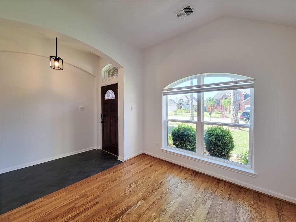 The home’s exterior features classic brick veneer on a sturdy slab foundation with a gable roof of composition shingles. Inside,a welcoming foyer opens to formal living and dining areas that flow into a spacious family room highlighted by a gas-log fireplace and large windows for natural light. Hardwood and tile floors accent the main areas,while bedrooms are comfortably carpeted. The kitchen showcases oak cabinetry,a large pantry,center island,and breakfast bar—perfect for daily meals or entertaining. This four-bedroom,2-bath home includes a primary suite with a garden tub,glass shower,dual vanities,and walk-in closet. Secondary bedrooms share a full bath with a tub/shower combo. Central electric cooling,gas heating,ceiling fans,and a programmable thermostat ensure year-round comfort. Outside,a fenced backyard,covered patio,and attached two-car garage enhance convenience and functionality,offering a well-balanced design in a quiet Houston neighborhood. MLS# 27584733