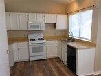 Stylish, 2-story, 3 bedroom/ 2 bath home, where you'll enjoy the light and airy entry with vaulted ceilings in dining area that carry over to the kitchen space as well. Abundant windows give way to plenty of natural light throughout the entire home with ceiling fans in just about every room as well. A free flowing floorplan leads you into a roomy kitchen space with ample cabinet storage and an additional good sized pantry. You will find a cute little breakfast area attached to the kitchen, that opens up and is connected to the family room, with an open air concept. The comfy family room boasts a fireplace to enjoy on a cold winter's day, as well as a nice ceiling fan to help keep you cool in the summer. All 3 bedrooms are located upstairs, with the Primary bedroom on one end. The Primary bedroom is accented with vaulted ceilings as well as large stylish windows and en suite bathroom with a double vanity and plenty of counter space! The second bath is located conveniently next to the other 2 bedrooms, on the other end of the hallway. You'll have carpet starting on the stairs and entire upstairs, as well as the wood like-flooring throughout the entire downstairs. Out back you have plenty of space in your nicely sized fenced yard with a patio to set up some seating area and grill to BBQ with the family and friends. Last, but not least, you have a roomy 2 car garage!