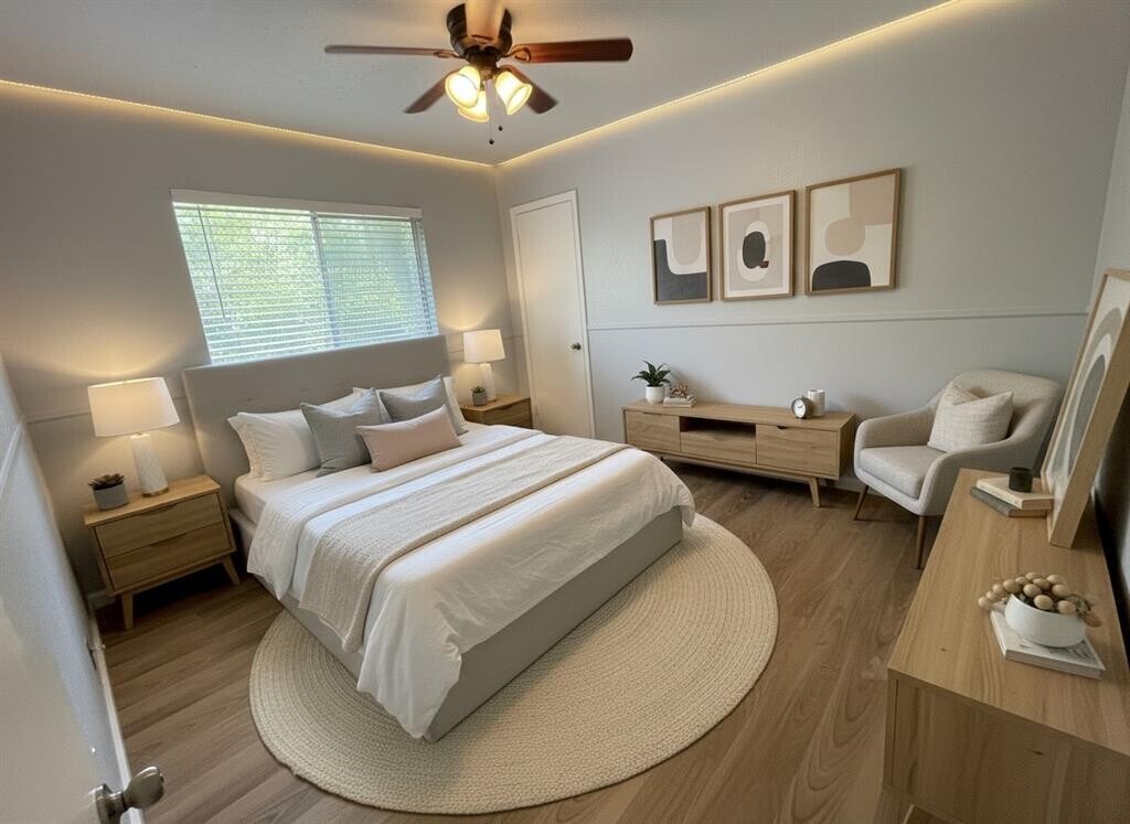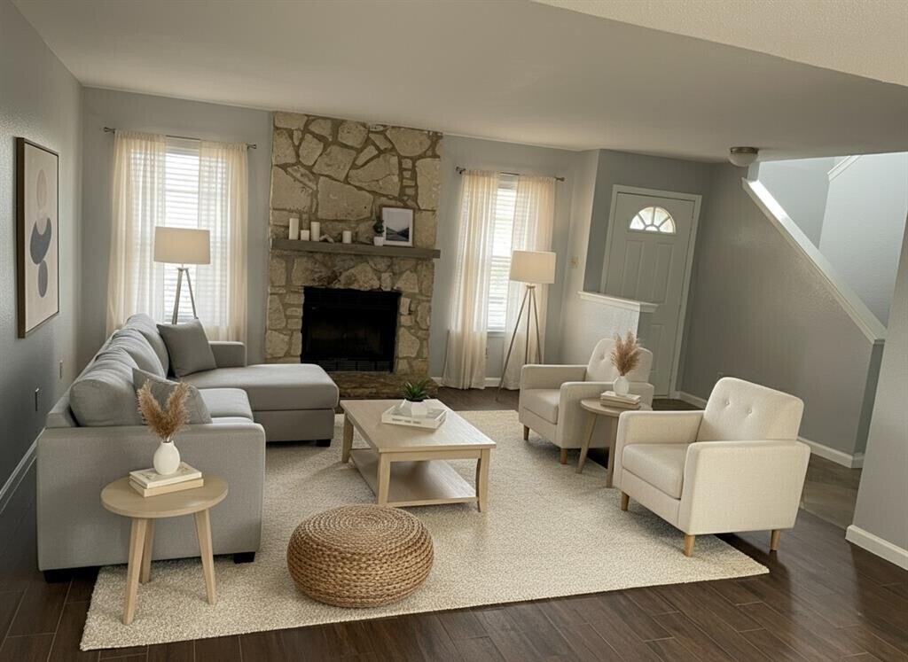 New flooring on stairs and all 4 bedrooms (two bedrooms are extra large); new blinds, fresh painting throughout, front porch, back patio and big private yard, furniture in photos is staged. Move-in ready! Text/Call John at for showing
