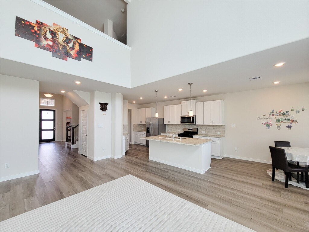 Welcome to 8406 Hazel River Dr,a nearly new Meritage home offering 4 bedrooms,3.5 baths,and 3,162 sq ft of elegant living space. Upon entry,you're greeted by soaring ceilings,a stunning spiral staircase,and abundant natural light. The kitchen features Granite countertops,built-in stainless steel appliances,a breakfast bar,and plenty of counter and cabinet space. Both the formal dining room and breakfast area are located on either side of the kitchen,providing the perfect setup for formal gatherings or casual meals. The spacious living area showcases a wall of windows that fills the home with natural light and offers views of the backyard. The downstairs primary suite easily accommodates king-sized furniture and features bay windows overlooking the backyard along with a must-see primary bath. Upstairs offers an open game room and an enclosed theater room,perfect for entertaining or relaxing,along with three spacious secondary bedrooms and two full baths. MLS# 13427920